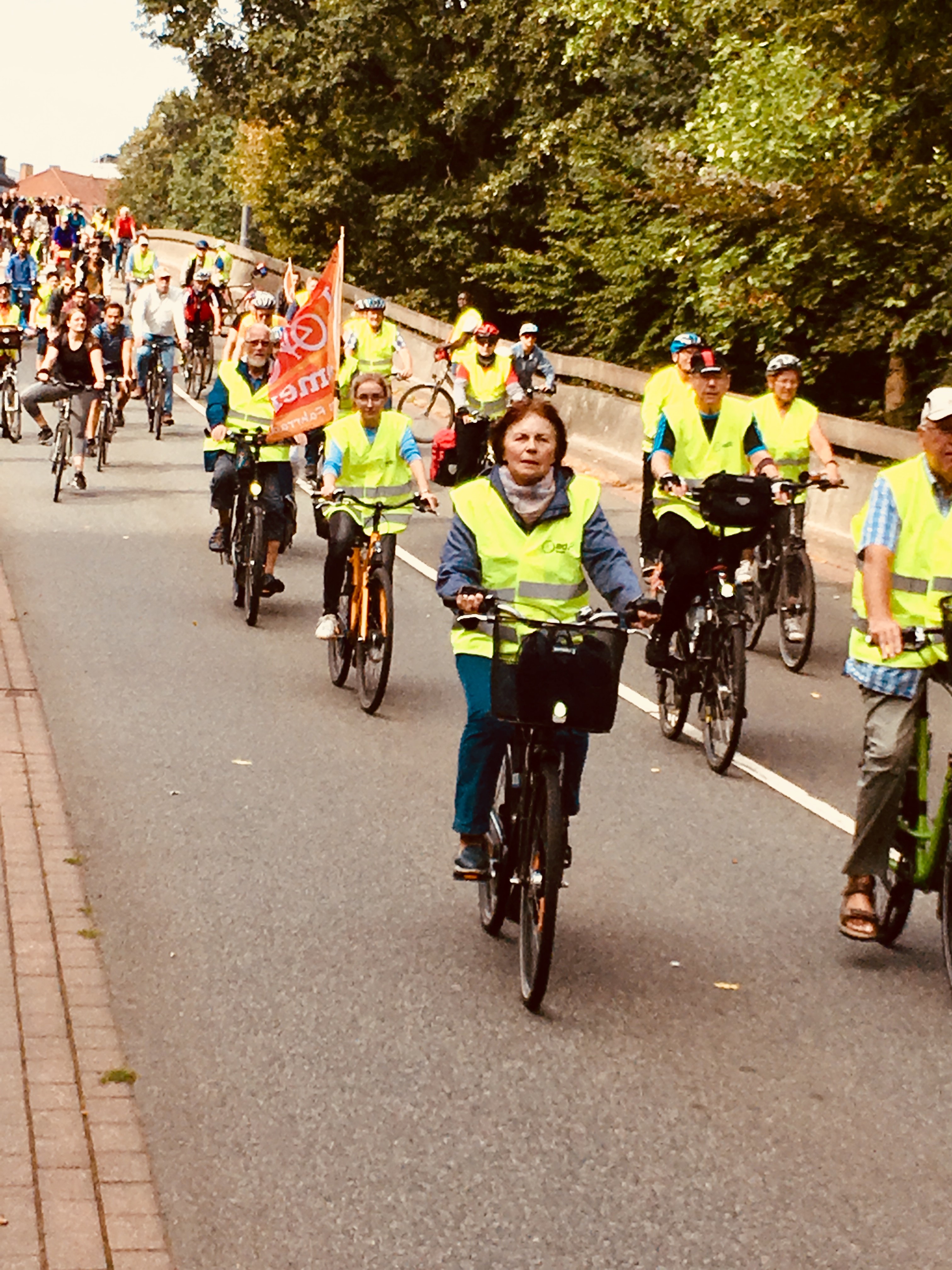 Radfahrerinnen und Radfahrer der Fahrradtou rin Warnwesten