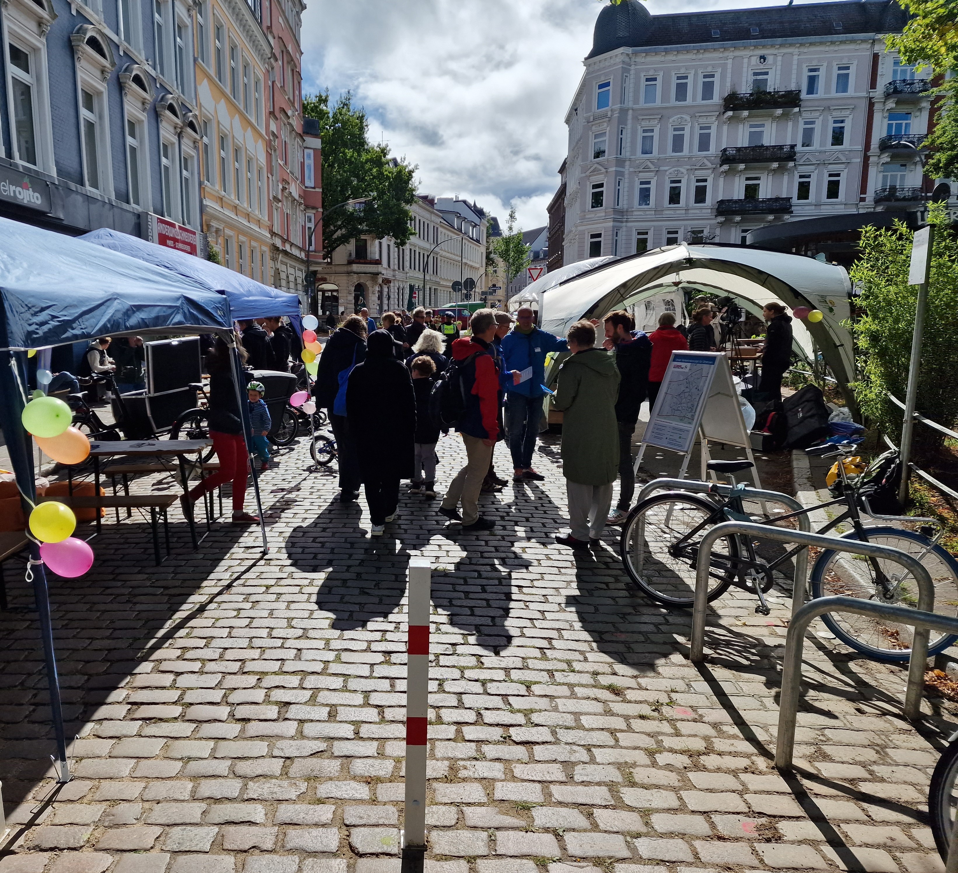 • Im Bezirk Altona der Hansestadt Hamburg wurde am 17.09.2022 mit einem Straßenfest in Ottensen der Auftakt von Umgestaltungsmaßnahmen gefeiert. Das Nachbarschaftsfest in der kurz zuvor dauerhaft verkehrsberuhigten Großen Brunnenstraße bot im Zuge der EMW den Anwohnern*Anwohnerinnen die Möglichkeit, sich über die aktuelle Maßnahme sowie die zukünftige Verkehrsplanung im Dialog mit dem Planungsteam aus dem Bezirksamt auszutauschen.