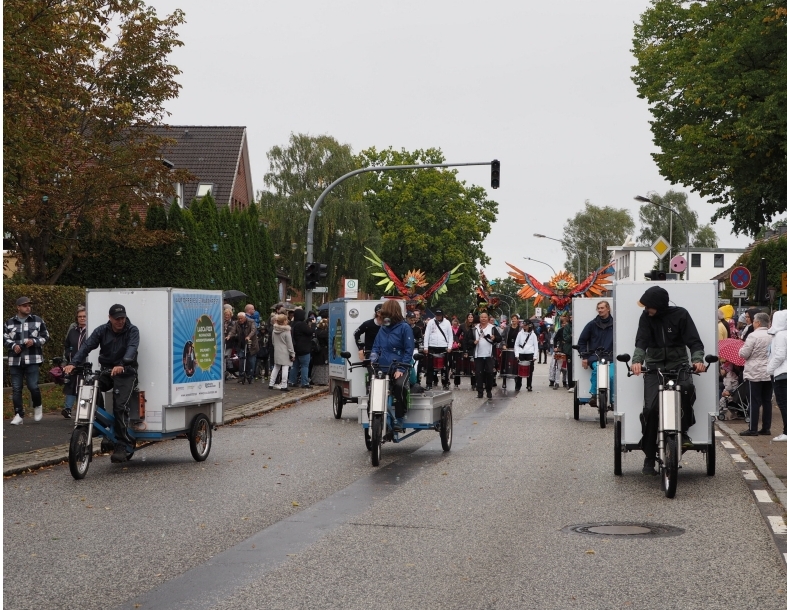 • Am 18.09.2022 stand in Norderstedt wieder das große autofreie Straßenfest MOVIMENTO auf dem Programm. Es ist der jährliche Beitrag Norderstedts zur EMW und mittlerweile eines der größten Feste in Norderstedt. Viele zehntausend Festbesucher*innen kommen jedes Jahr auf die über 1.000 Meter lange eintägige Fußgängerzone mit Tanz- und Musikbühnen, Spiel- und Sportaktionen. Das Besondere: Ein Cargo-Fahrrad-Dienst transportiert das Equipment fast aller Aussteller*innen per Rad an ihren Standort.