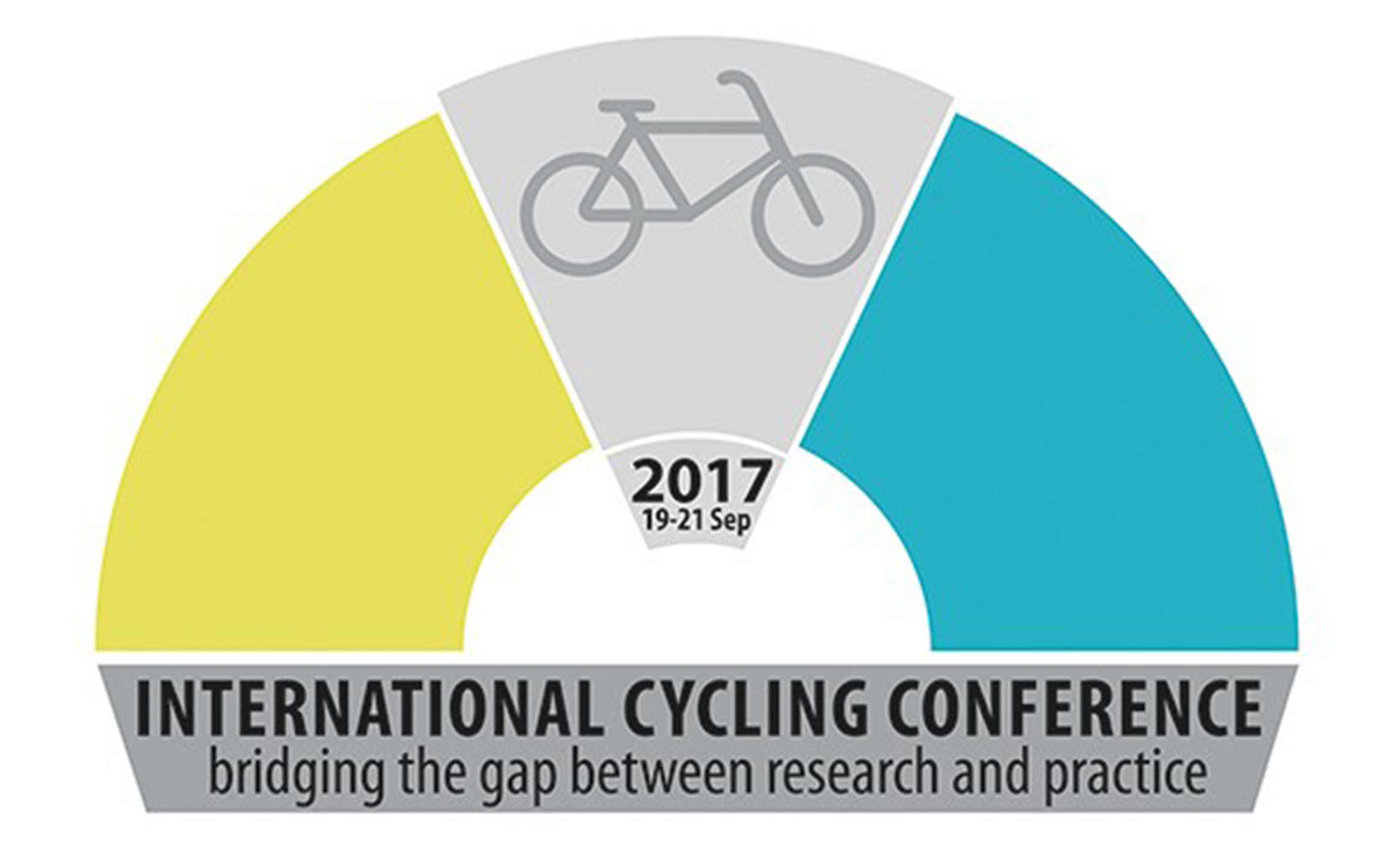 Das dreifarbige Logo der International Cycling Conference 2017 zeigt ein Fahrrad und darunter den Titel der Konferenz als Schriftzug