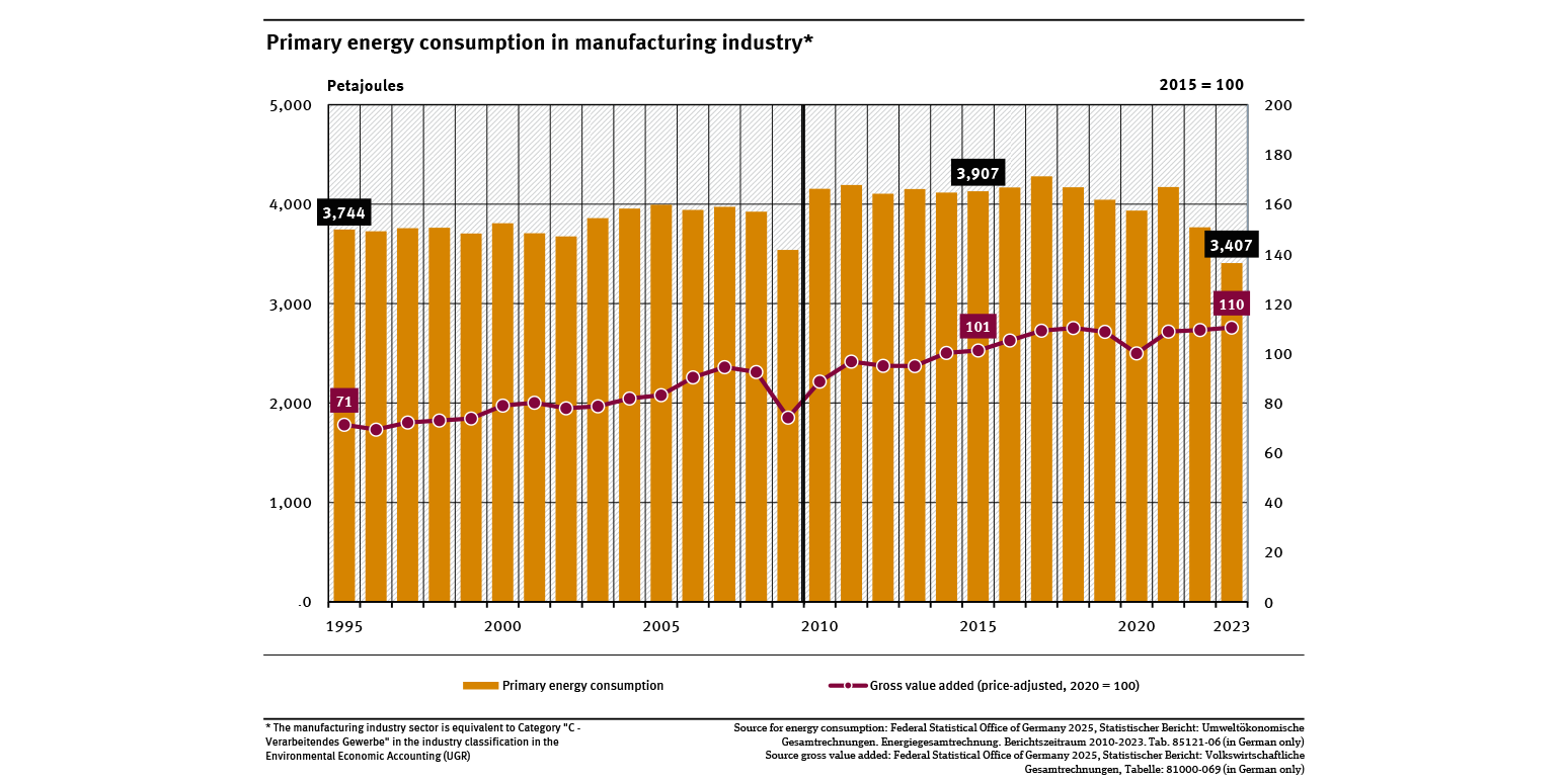 Primary energy consumption in manufacturing industry