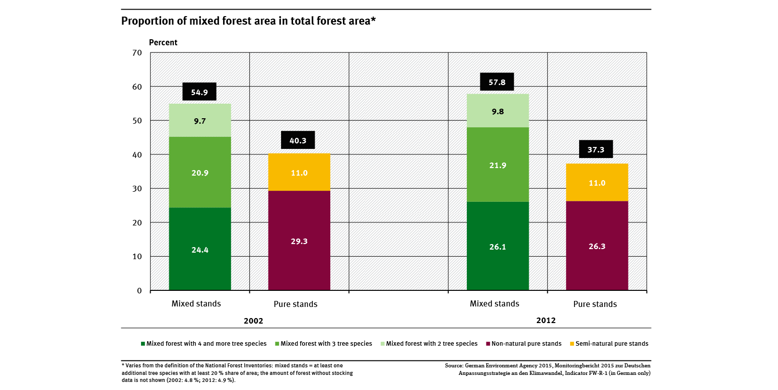 However, mixtures are not automatically valuable in terms of nature and environmental conservation. Mixed stands can also be made up of tree species which do not correspond to the natural forest community or are not adapted to the site.