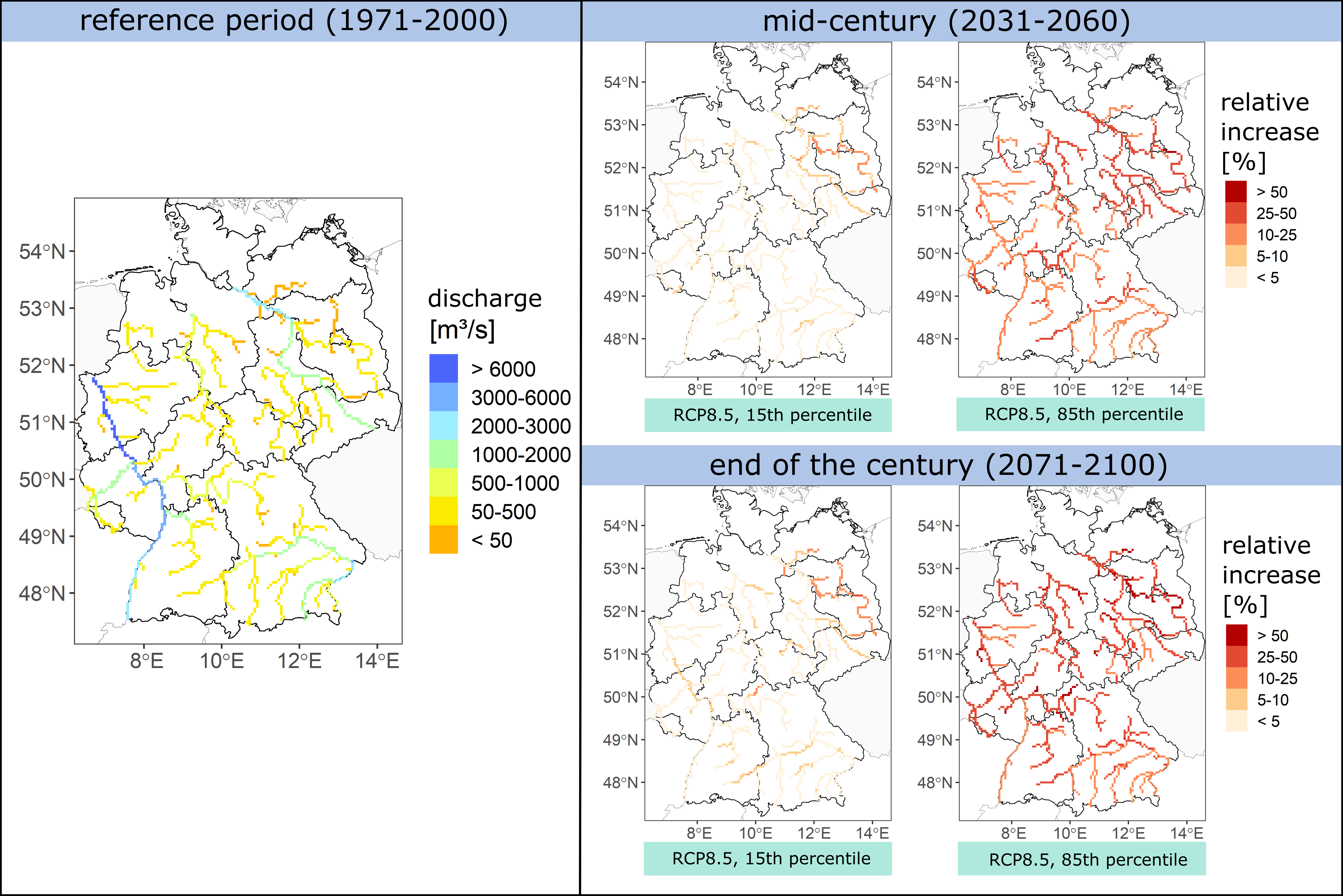 Source: Verändert nach Klimawirkungs- und Risikoanalyse 2021 für Deutschland Teilbericht 3: Risiken und Anpassung im Cluster Wasser. Datenquelle: Bundesanstalt für Gewässerkunde