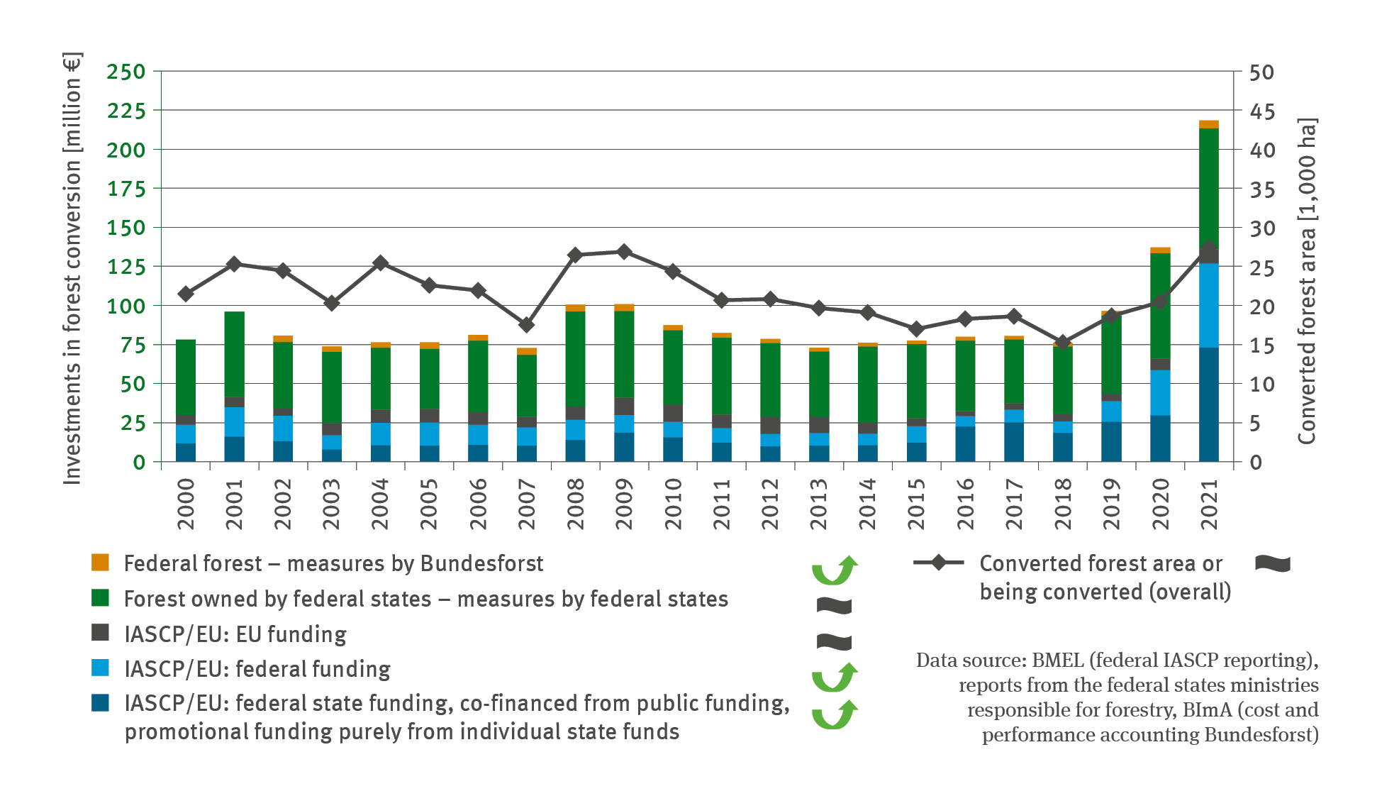 Source: BMEL (federal IASCP reporting)/ reports from the federal states ministries responsible for forestry/ BImA (cost and performance accounting Bundesforst) Download image (154.83 kB)