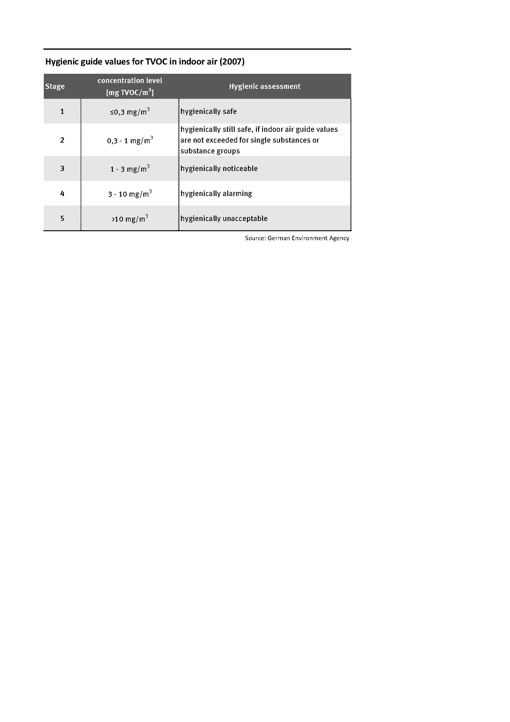 Indoor air guide values for TVOC in indoor air