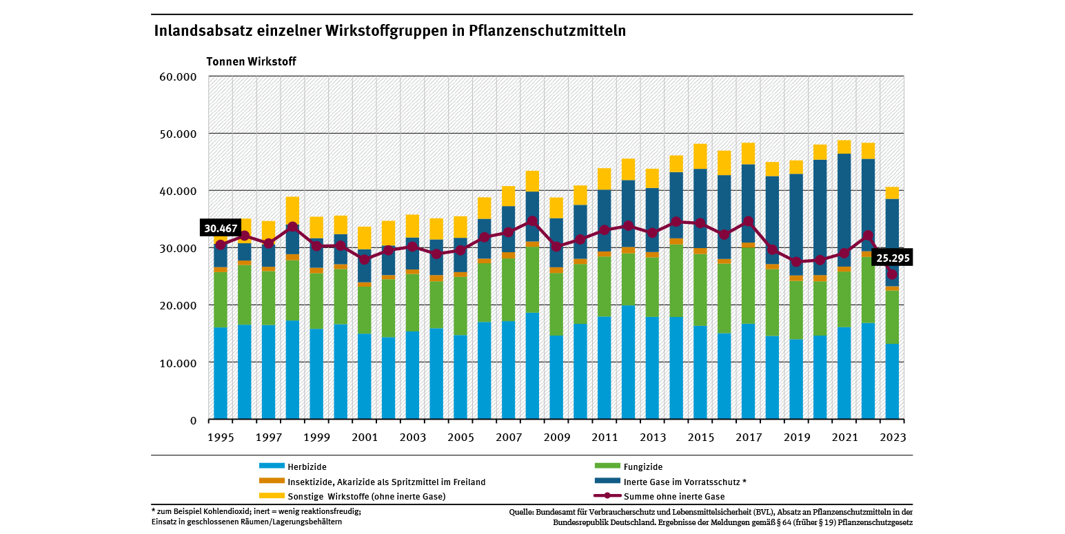 Bundesamt für Verbraucherschutz und Lebensmittelsicherheit (BVL): Absatz an Pflanzenschutzmitteln in der Bundesrepublik Deutschland. Ergebnisse der Meldungen gemäß § 64 (früher § 19) Pflanzenschutzgesetz