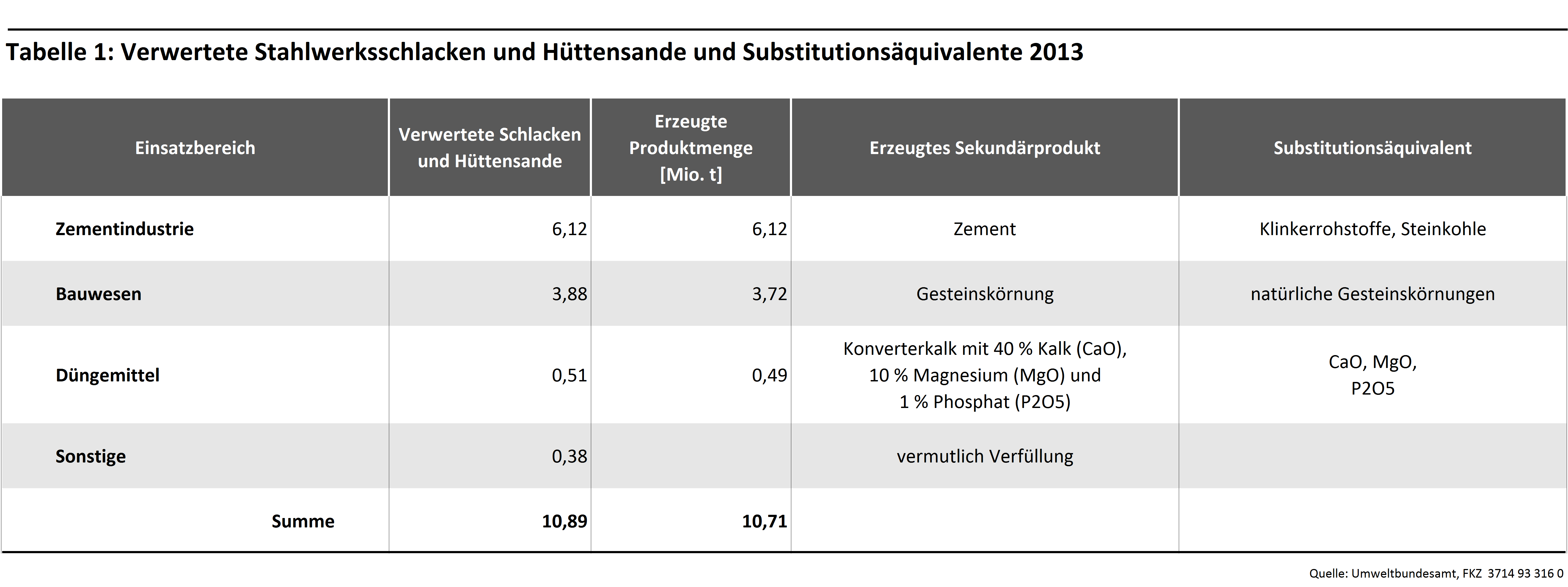 Schlacken und Hüttensande Tabellen: Sekundärproduktion
