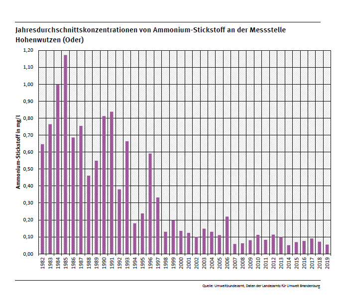 Fließgewässergüte 1982-2019 Messstelle Hohenwutzen an der Oder