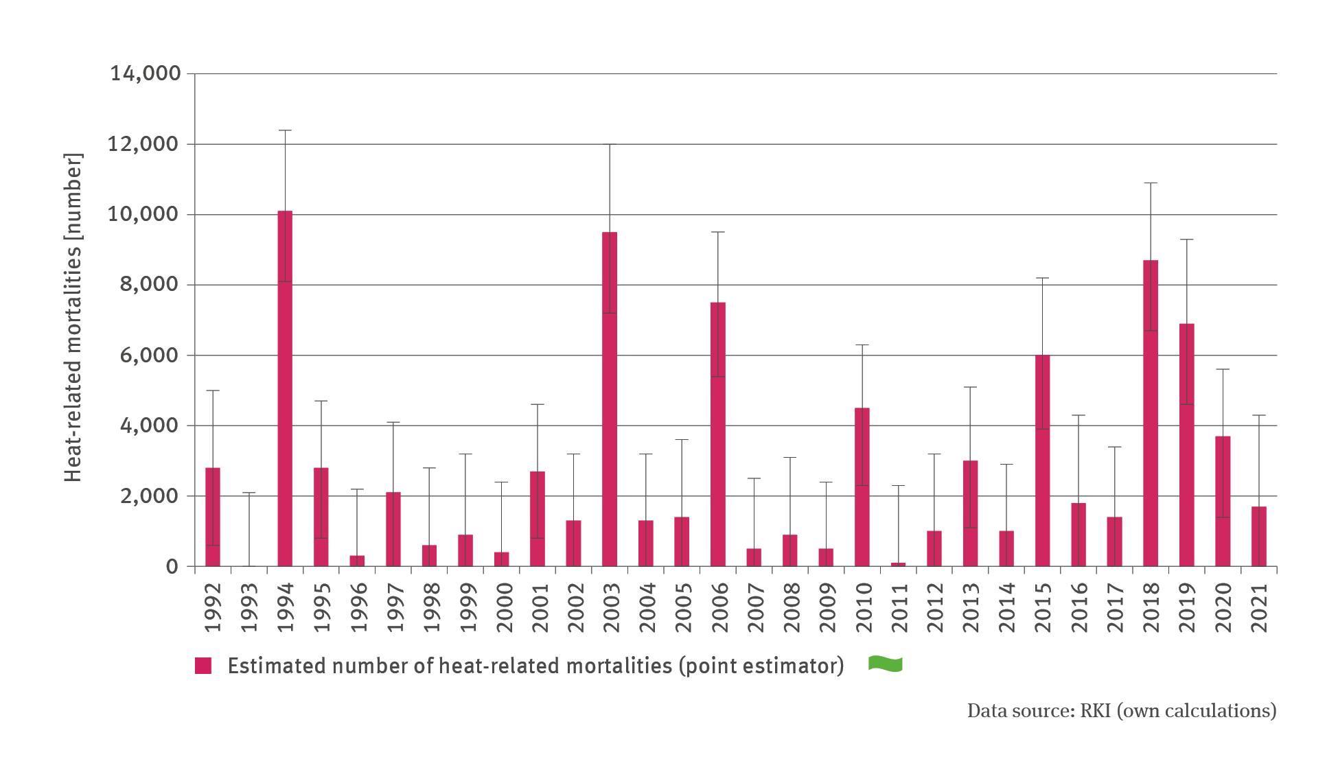 14 - Winklmayr C., Muthers S., Niemann H., Mücke H.G., an der Heiden M. 2022: Heat-related mortality in Germany from 1992 to 2021. Dtsch Arztebl Int, 119: 451–7. doi: 10.3238/arztebl.m2022.0202