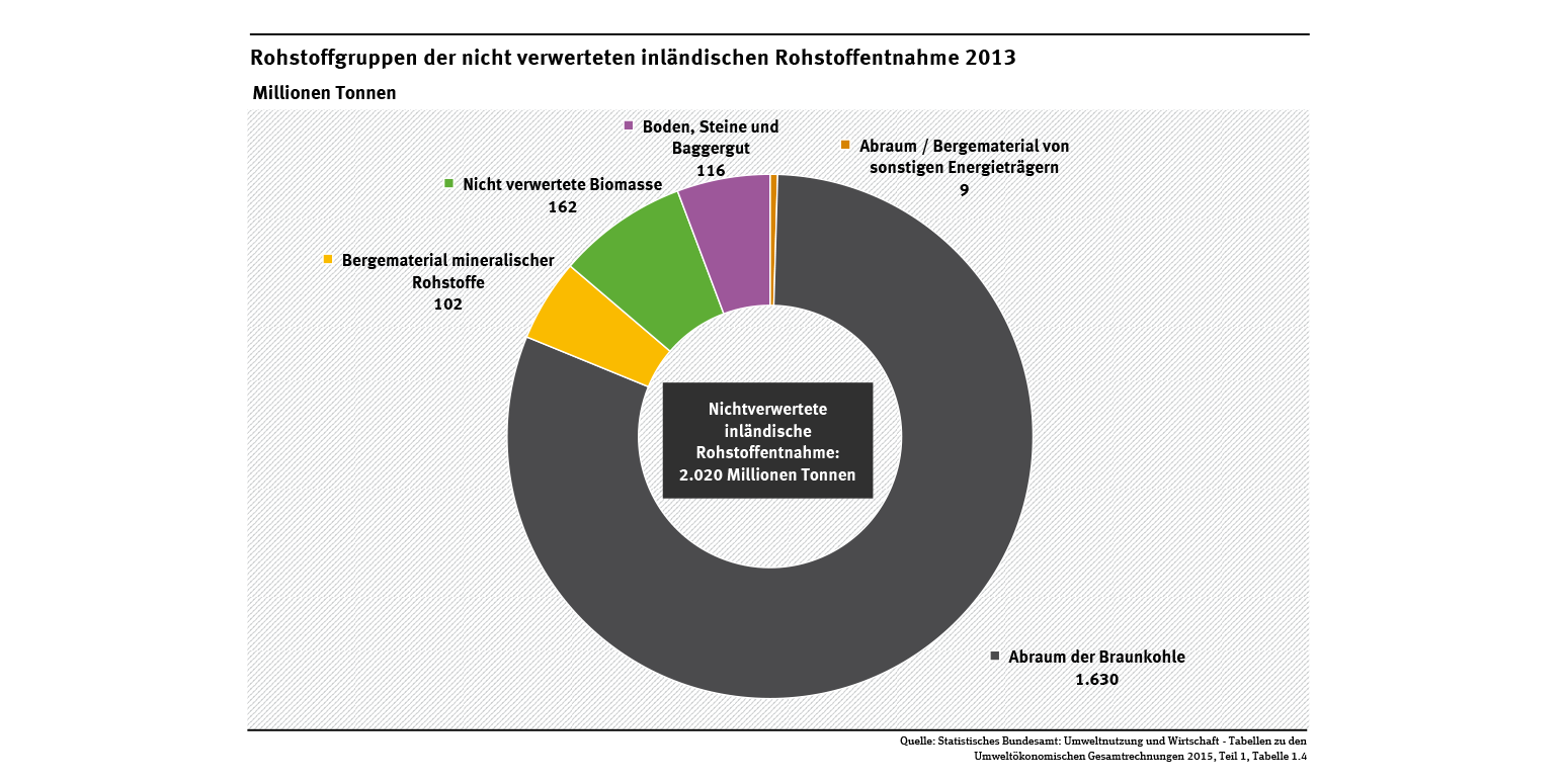 Werden Rohstoffe gefördert, fällt auch Abraum, Bergematerial oder Bodenaushub an. Dieses in der Regel wirtschaftlich nicht genutzte Material wird auch als „ungenutzte Entnahme“ oder als „versteckter Stoffstrom“ bezeichnet. Solch nicht verwertetes Material entsteht auch bei der Herstellung von Biomasse: So fallen bei der Ernte Rückstände an und bearbeitete Böden werden durch Erosion abgetragen.