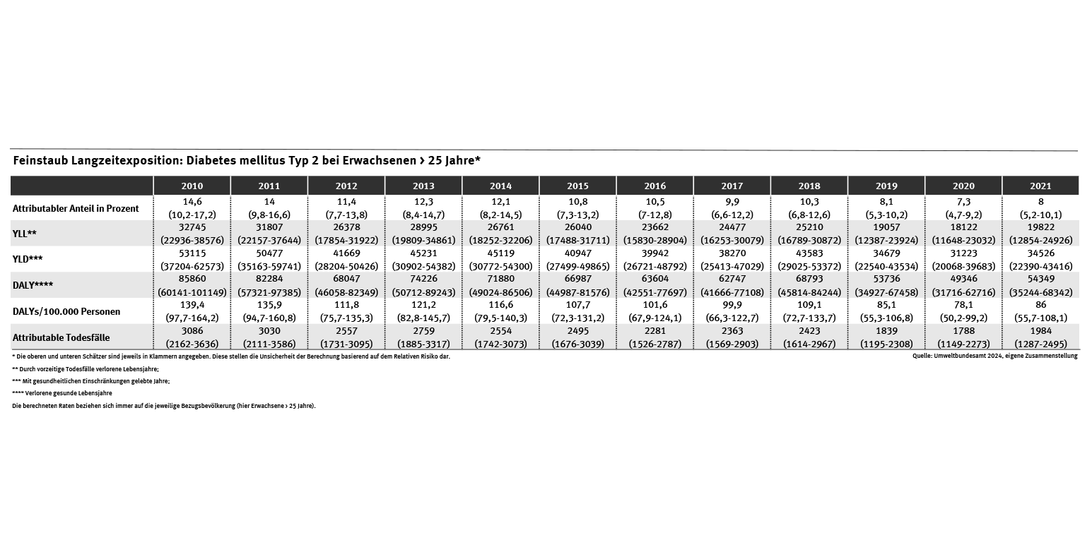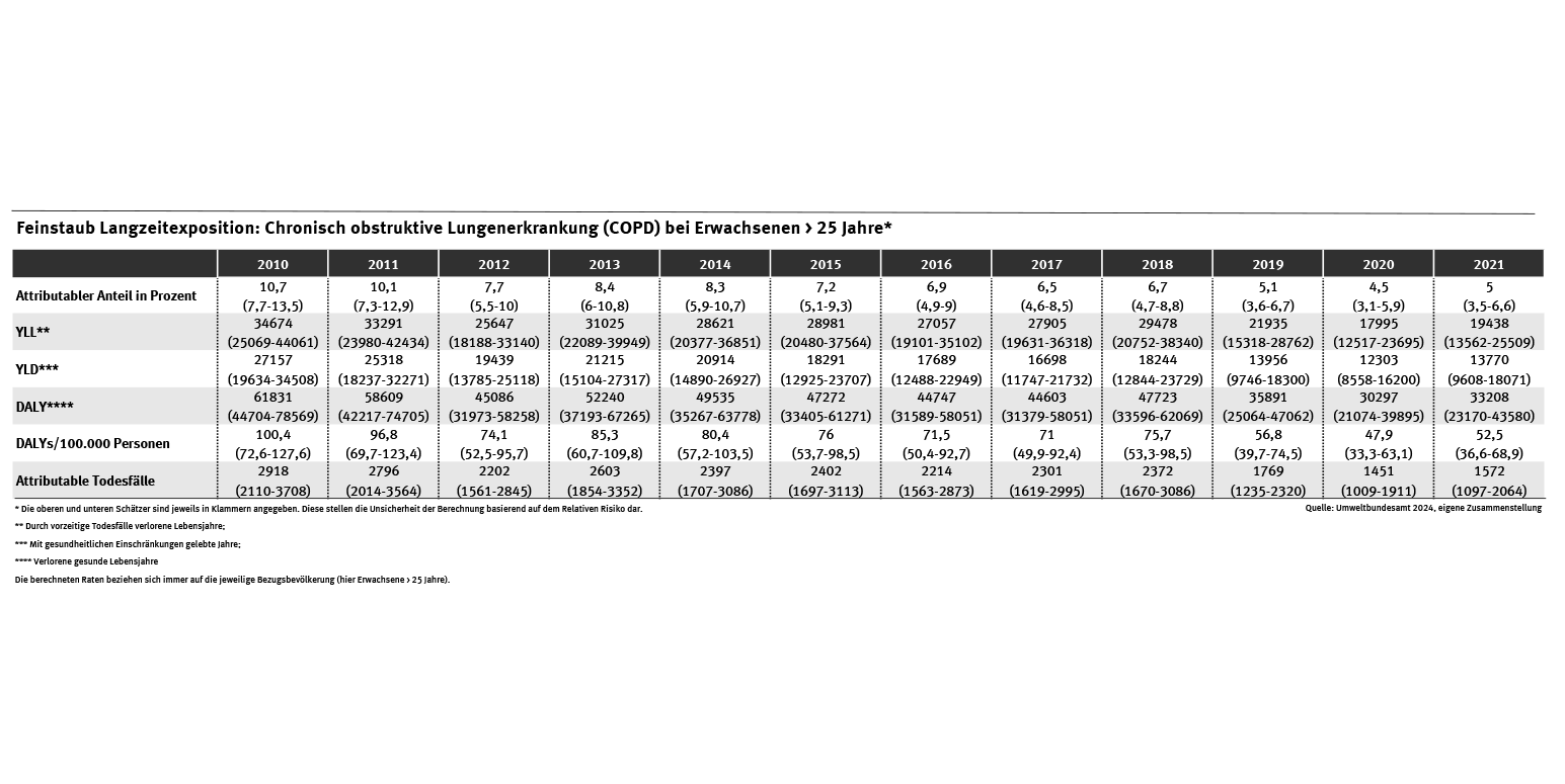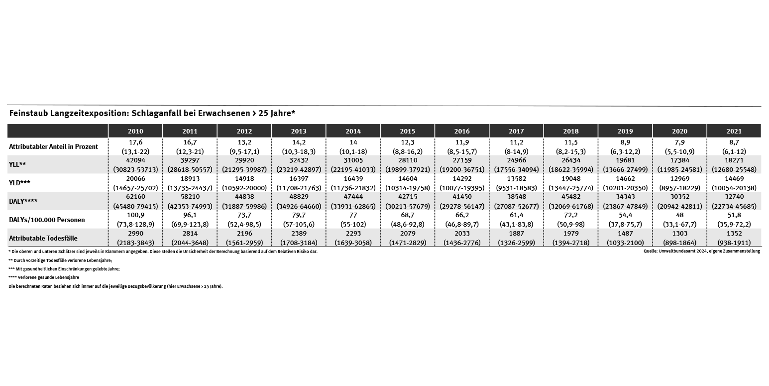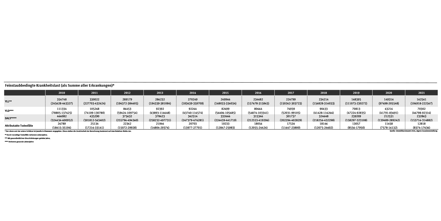 - die Krankheitslast durch Feinstaub