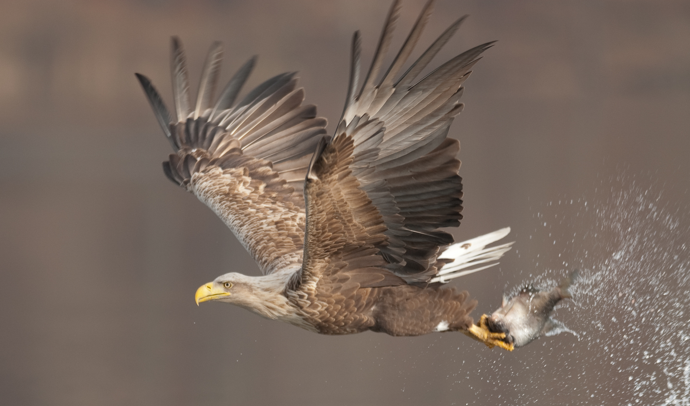fliegender Seeadler mit einem Fisch in den Krallen Seeadler
