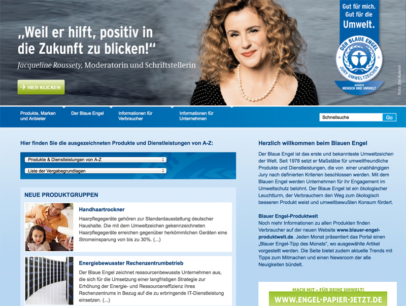 Die Homepage des Umweltzeichens Blauen Engels informiert über umweltschonende Produkte.
