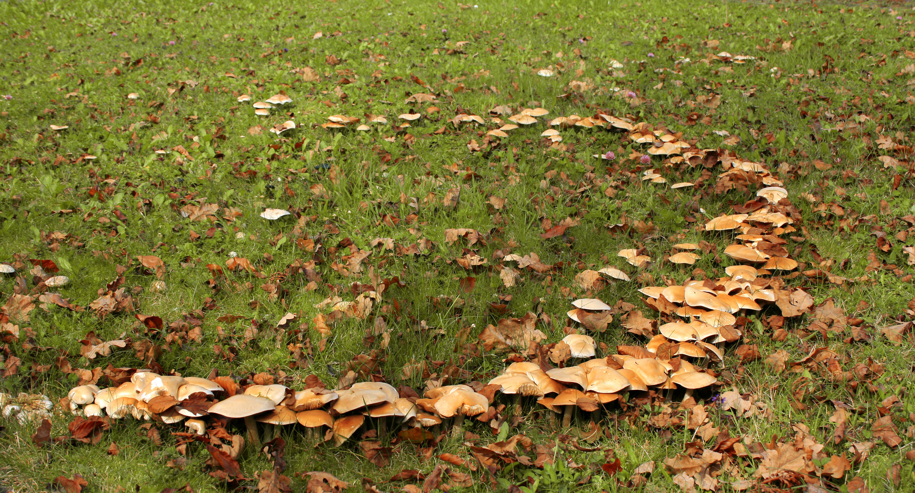 • Unregelmäßig im Rasen heranwachsende Hutpilze; vor allem bei warmer Witterung.