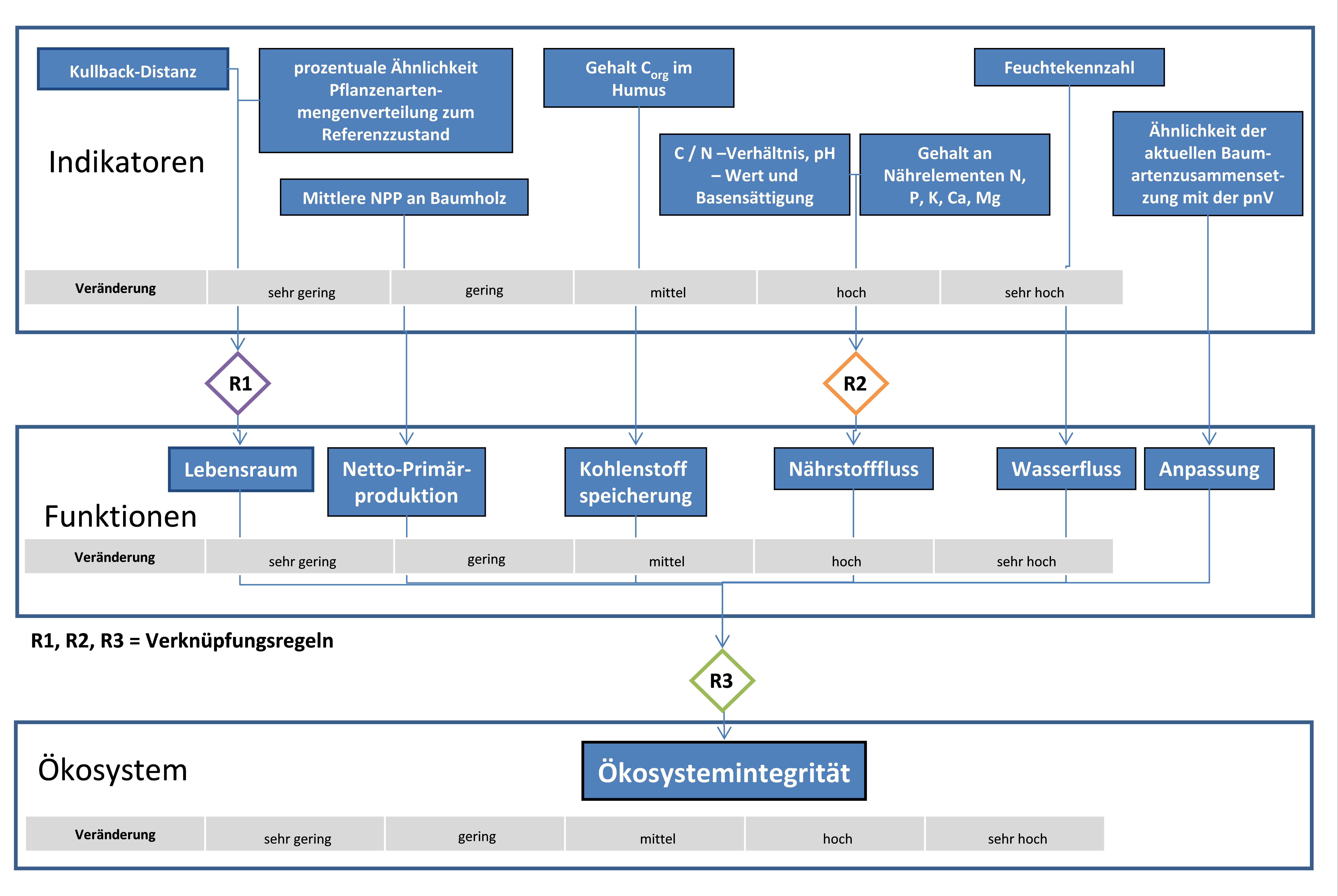 Als Ergebnis zweier Forschungsvorhaben des Umweltbundesamtes mit Fokus auf Waldökosysteme liegen praxisreife Methoden vor, mit denen Anwender bewerten können, ob die Integrität von Waldökosystemen hinsichtlich ihrer Stoff- und Wasserhaushalte, ihrer biologischen Vielfalt und Anpassungsfähigkeit (Resilienz) gefährdet ist. Der Fokus liegt insbesondere auf den langfristigen Wirkungen von Stickstoffeinträgen aus der Atmosphäre und Klimaänderungen auf die Ökosystemintegrität. Die Bewertung dient dazu, wissenschaftlich begründete, tragfähige Maßnahmen für die Erhaltung oder Verbesserung des Zustands von Ökosystemen ableiten zu können, darunter Maßnahmen der Luftreinhaltung, der Bewirtschaftung und Klimaanpassung.