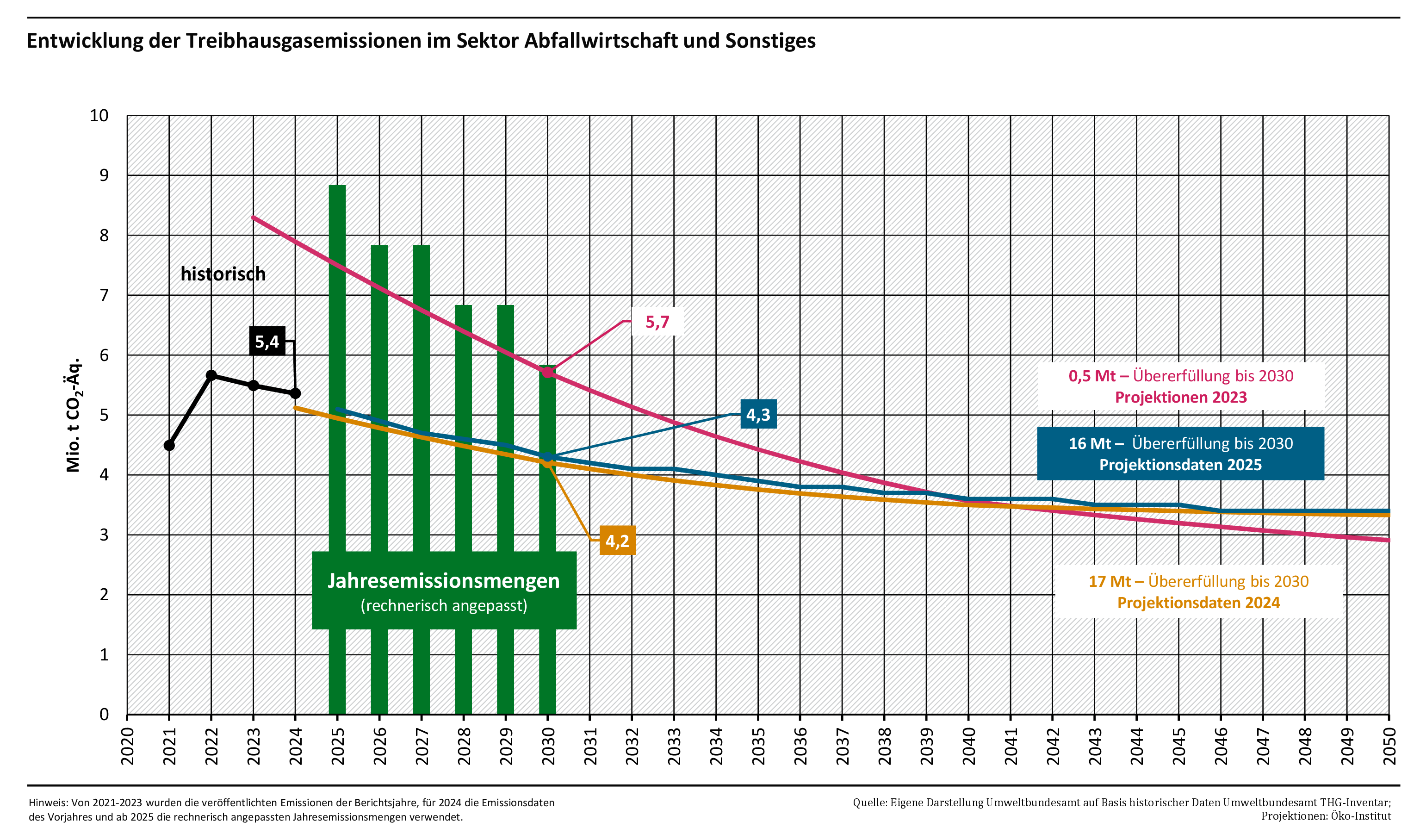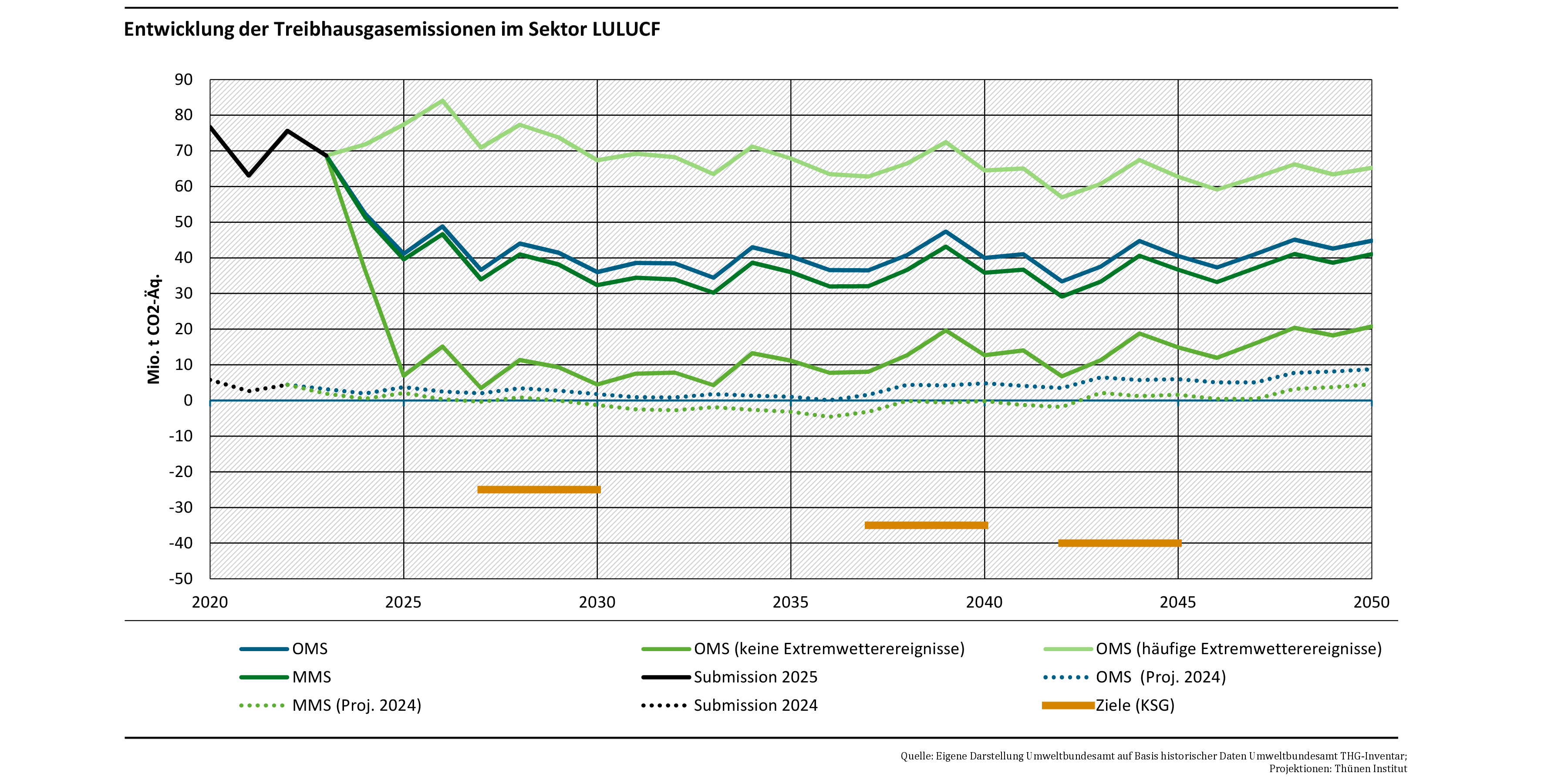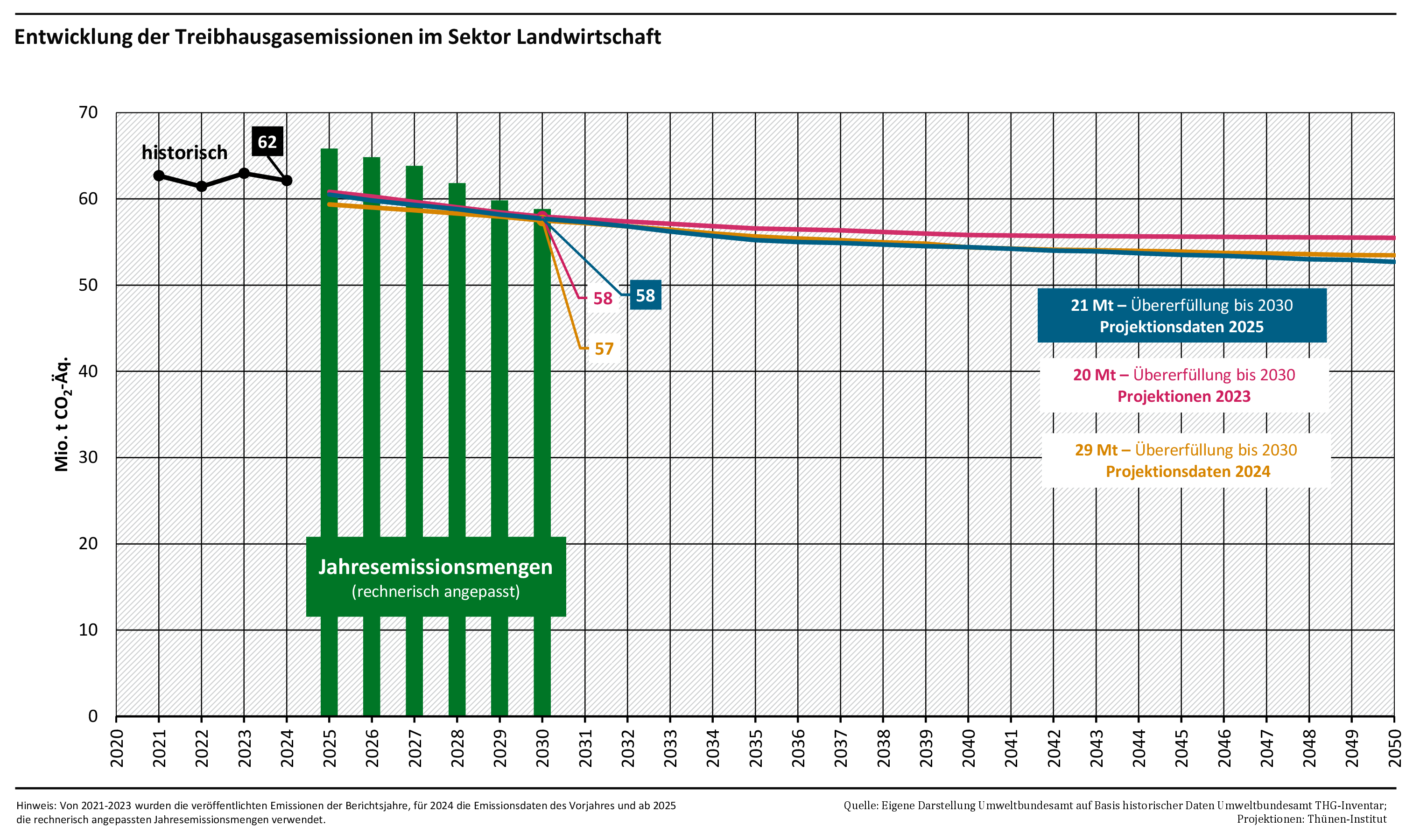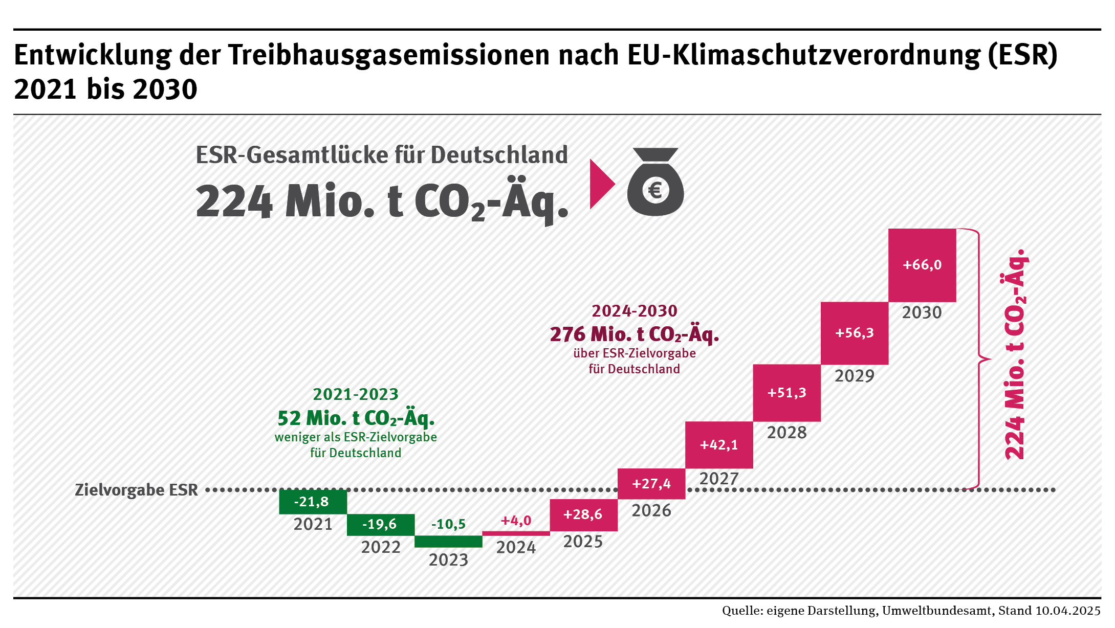 Im Sinne dieses gesetzlichen Auftrags hat der ERK am 15. Juli 2025 seinen Prüfbericht zur Berechnung der deutschen Treibhausgasemissionen für das Jahr 2024 und zu den Projektionsdaten 2025 veröffentlicht. Darin kommt der ERK mit Blick auf die Projektionsdaten 2025 zu dem Schluss, dass die Emissionsmenge bis 2030 tendenziell unterschätzt würde, das Maß der Unterschätzung jedoch in der Größenordnung des ausgewiesenen Puffers liege. Darüber hinaus weist der ERK darauf hin, dass laut Projektionsdaten die nationalen Verpflichtungen unter der europäischen Lastenteilung ab dem Jahr 2024 verfehlt werden. Im Sinne des KSG stellt der ERK für 2025 keine zweite Überschreitung fest. Der oben beschriebene Nachsteuerungsmechanismus kommt nicht zur Anwendung. Unabhängig davon muss die neue Bundesregierung spätestens zwölf Monate nach Beginn der Legislaturperiode ein Klimaschutzprogramm vorlegen. Vor diesem Hintergrund betont der ERK, dass die absehbare Zielverfehlung im Jahr 2040 laut KSG adressiert werden muss und empfiehlt zudem, auch die projizierte Zielverfehlung der Klimaneutralität im Jahr 2045 in den Blick zu nehmen.