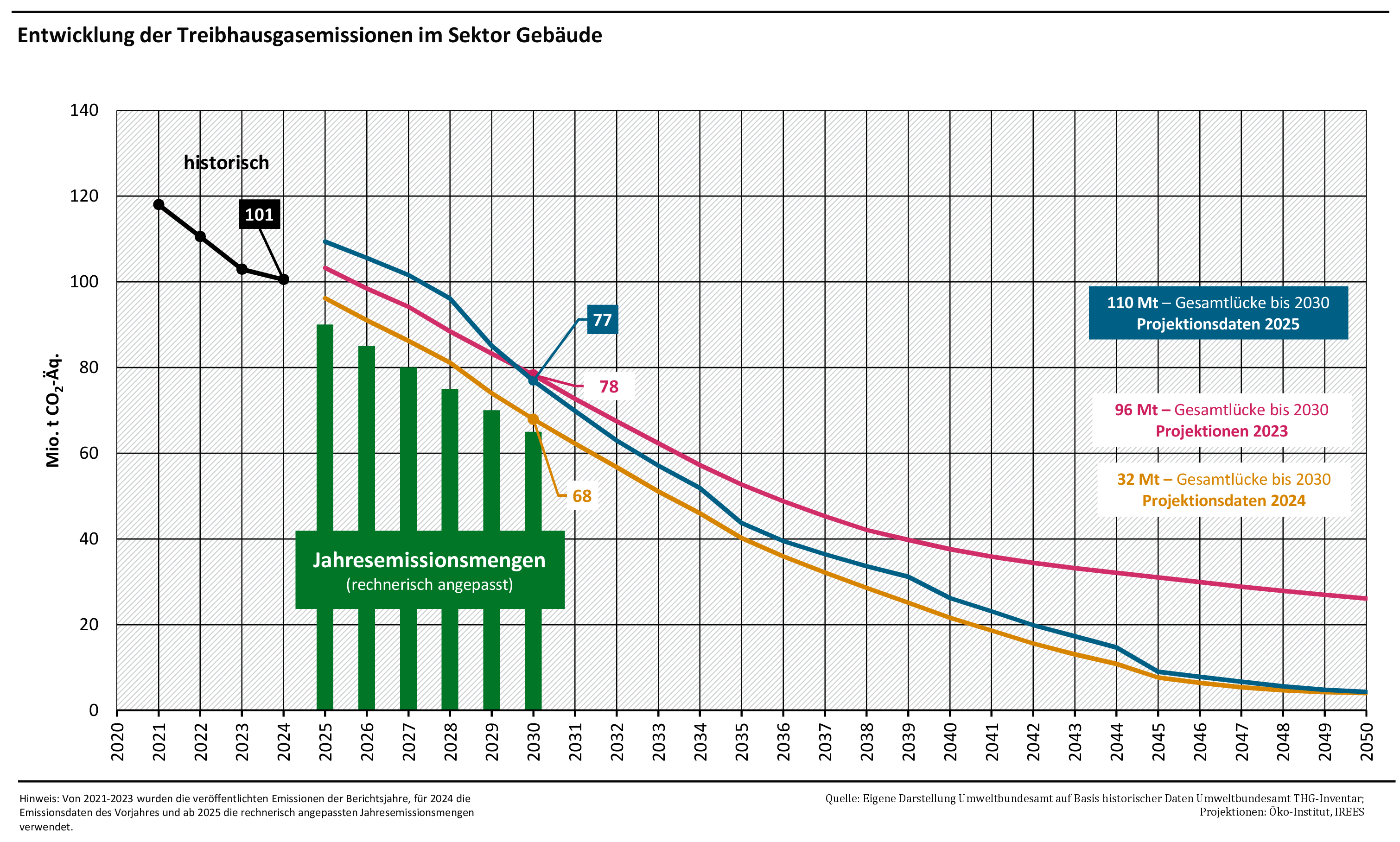 Entsprechend seiner gesetzlichen Aufgabe gemäß KSG hat der Expertenrat für Klimafragen (ERK) im Juni 2024 ein Sondergutachten zu den Projektionsdaten 2024 veröffentlicht. Darin macht er deutlich, wo er Risiken und Unsicherheiten in den Annahmen der Projektionen sieht. Der ERK betont damit, dass das Schließen der Klimaschutzlücke bzw. das Erreichen des Klimaziels bis 2030 noch nicht abgesichert bzw. nicht als überwiegend wahrscheinlich gelten kann. Diese Einschätzung bekräftigt die Aussage des Umweltbundesamtes vom März 2024, dass für die Zielerreichung im Jahr 2030 die getroffenen Annahmen auch umgesetzt werden müssen. Dies betrifft beispielsweise den Ausbau der erneuerbaren Energien oder die Finanzierung von Maßnahmen zur Transformation über den Klima- und Transformationsfonds.