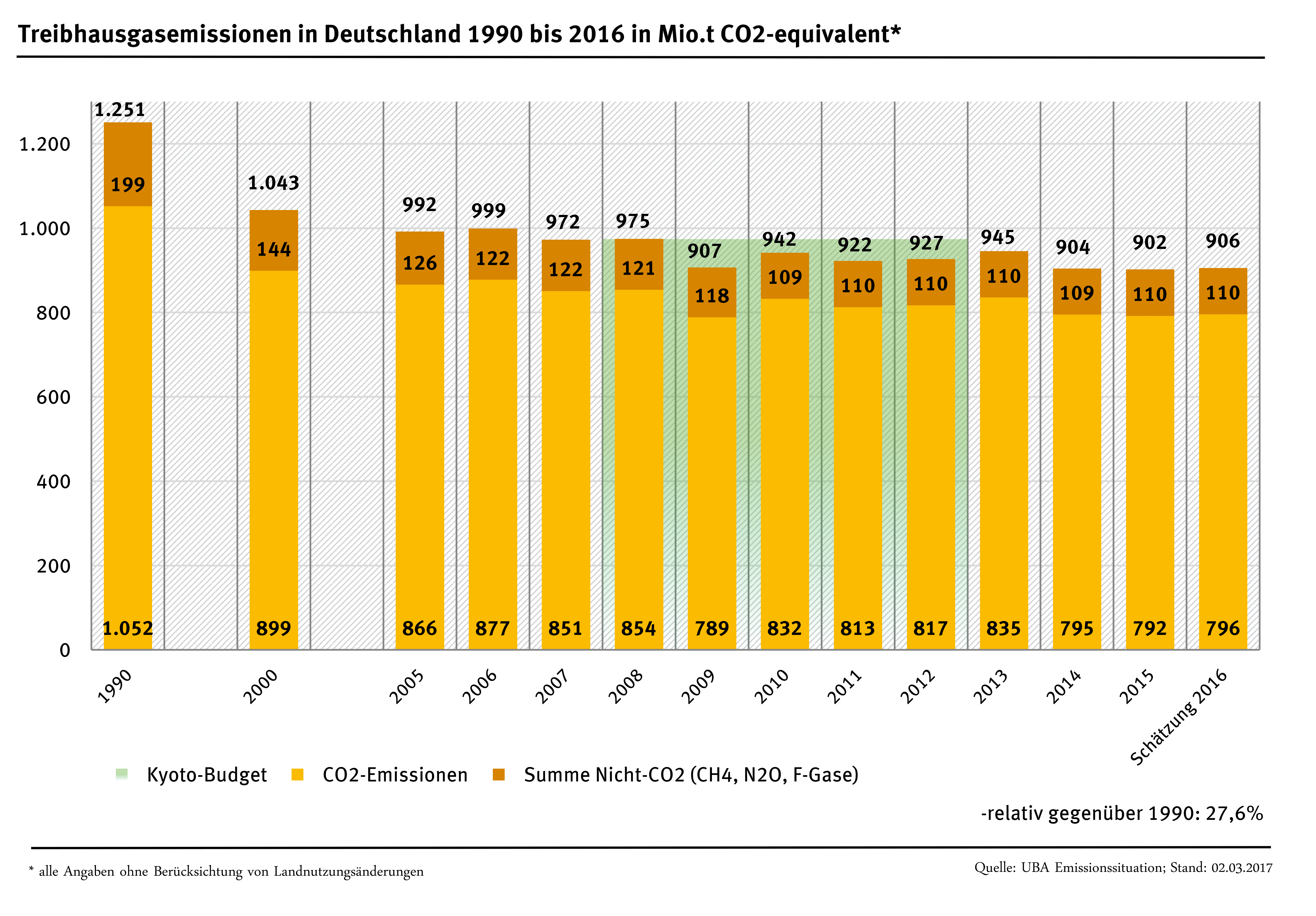 Germany's greenhouse gas emissions (GHG) amounted to nearly 906 million tons in 2016, which is about 4 million tons more than in 2015. This is according to current prognostic calculations by the German Environment Agency (UBA). The sharpest rise occured in the transport sector, showing 5.4 million tons more than in 2015 (+3.4 per cent). The sector's increased emissions are due in particular to the greater number of diesel fuel-powered vehicles on the roads and road freight transport which grew by 2.8 per cent. "Climate-related emissions from the transport sector have gone 2 million tons over the levels of 1990. If something doesn't happen soon in the transport sector, we will fail to reach our climate protection goals. The gains in vehicle efficiency have “gone up in smoke" because of the growth in transport performance", said UBA's President Maria Krautzberger. Germany's goal is to reduce emissions by 40 per cent up to 2020; the current level of reduction achieved is at only 27.6 per cent.