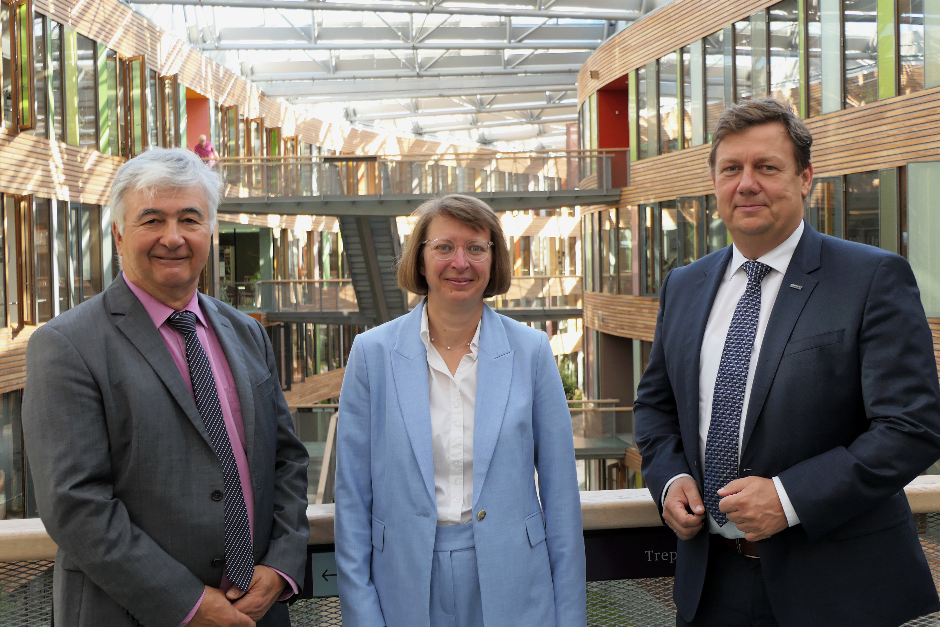 von links: Dr. Karen Ranft, Kanzlerin der Hochschule Merseburg; Prof. Dr. Markus Krabbes, Rektor der Hochschule Merseburg; Dr. Wolfgang Scheremet, Leiter des Zentralbereichs im Umweltbundesamt