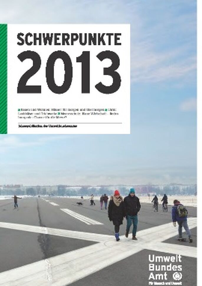 Der Lärmschutz ist 2013 einer von drei Arbeitsschwerpunkten des UBA. Über die Hälfte aller Deutschen fühlt sich durch Lärm belästigt. Weiterer Schwerpunkt sind die Meere, die vor allem durch Überfischung und Überdüngung belastet sind. Auch die Suche nach Rohstoffen auf dem Meeresgrund birgt neue Risiken. Drittes Thema ist „Nachhaltiges Bauen und Wohnen“ – hier geht es nicht nur um den Klimaschutz, sondern auch um rohstoffsparende und gesunde Baustoffe.