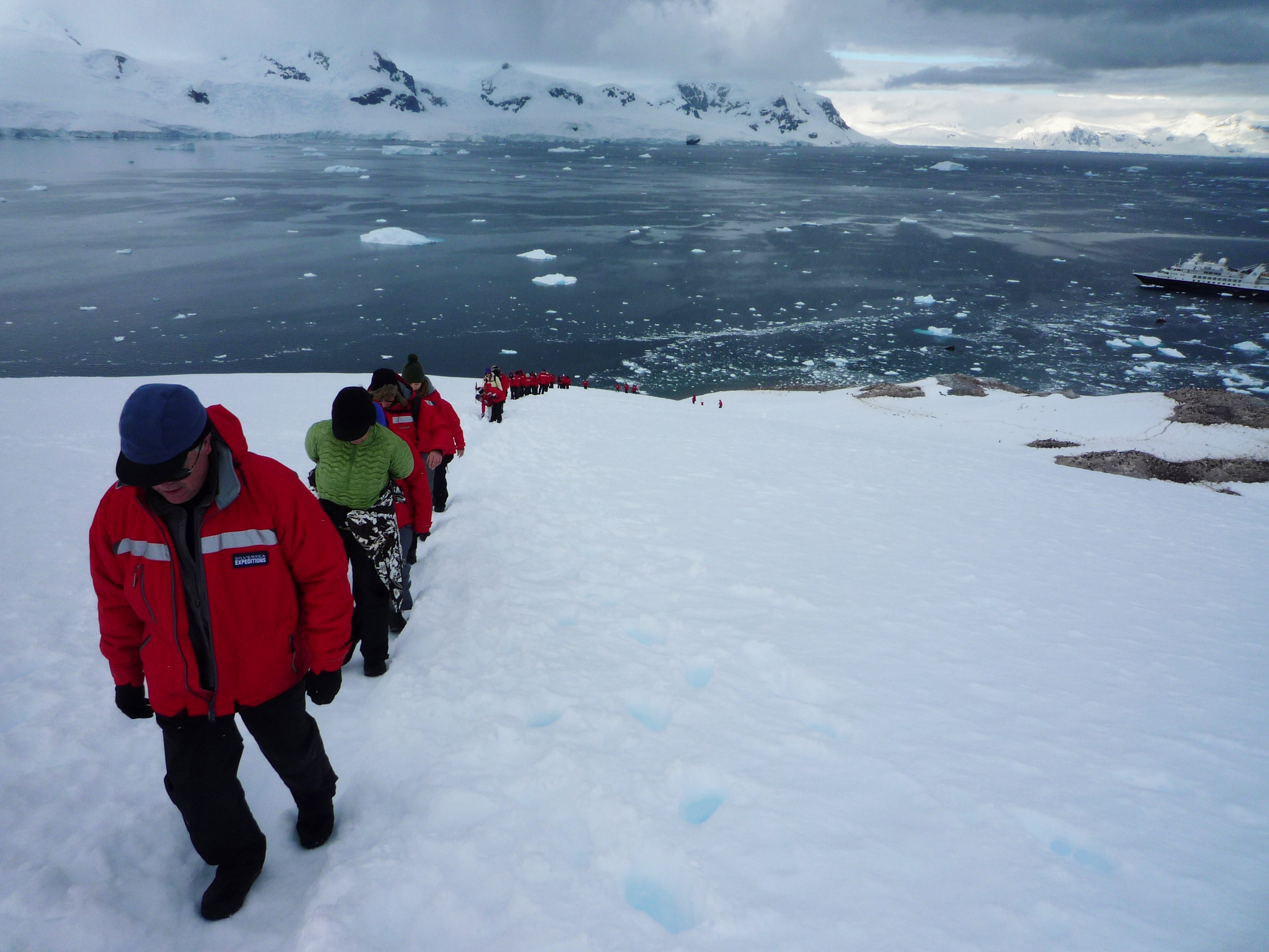 Tourists to Antarctica should exercise caution in general and follow the instructions which their tour guide gives. This means to move slowly and quietly when in the vicinity of wildlife and to keep at certain minimum distances. Areas with vegetation should not be trod upon. Before the journey itself and after every trip ashore, clothing and equipment must be cleaned in order to prevent the introduction of non-native species to the Antarctic. It is also forbidden to leave any waste in the Antarctic environment or to leave graffiti or other markings on historical buildings, research stations or rocks.
