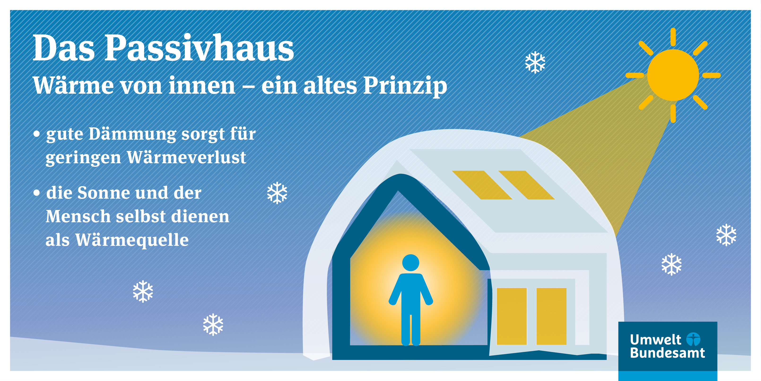 Infografik zur Funktionalität eines Passivhauses Infografik "Passivhaus: Wärme von innen - ein altes Prinzip"