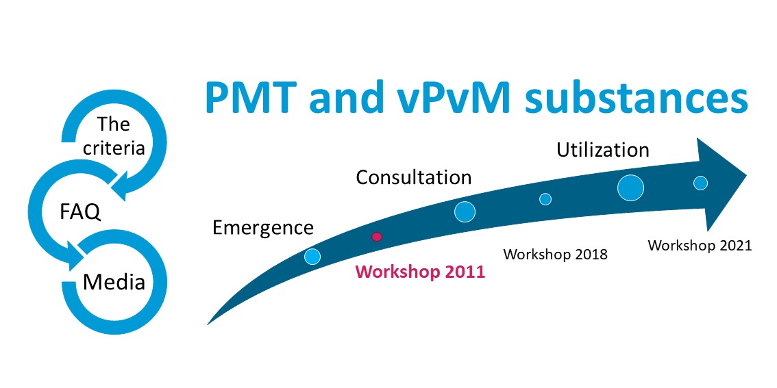 Read the full story related to the development of the PMT/vPvM criteria under the EU´s chemical legislation REACH to identify PMT/vPvM substances: (01) –> Introduction to PMT/vPvM substances, (02) –> Emergence (2009 – 2015) of the PMT/vPvM criteria, (03) –> First PMT Workshop 2011 (04) –> Public Consultation (2016 – 2019) on the PMT/vPvM criteria, (05) –> Second PMT Workshop 2018, (06) –> Utilization (2019 – ongoing) of the PMT/vPvM criteria, (07) –> Third PMT Workshop 2021, (08) –> Media coverage and dissemination, (09) –> Frequently Asked Question (FAQ), (10) –> The final PMT/vPvM criteria