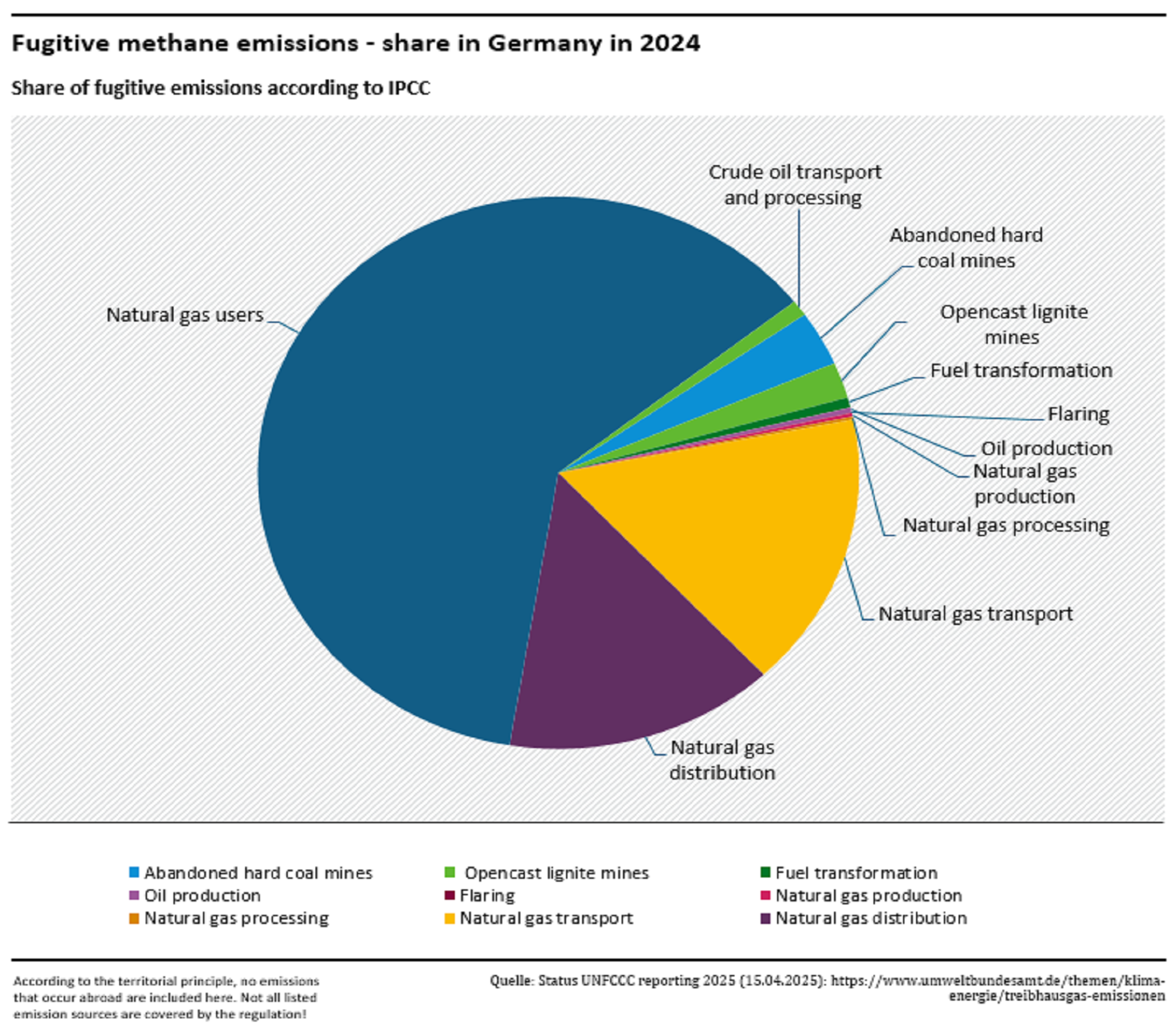 Fugitive methane emissions in Germany; a large part is not covered by the regulation. Source: Umweltbundesamt