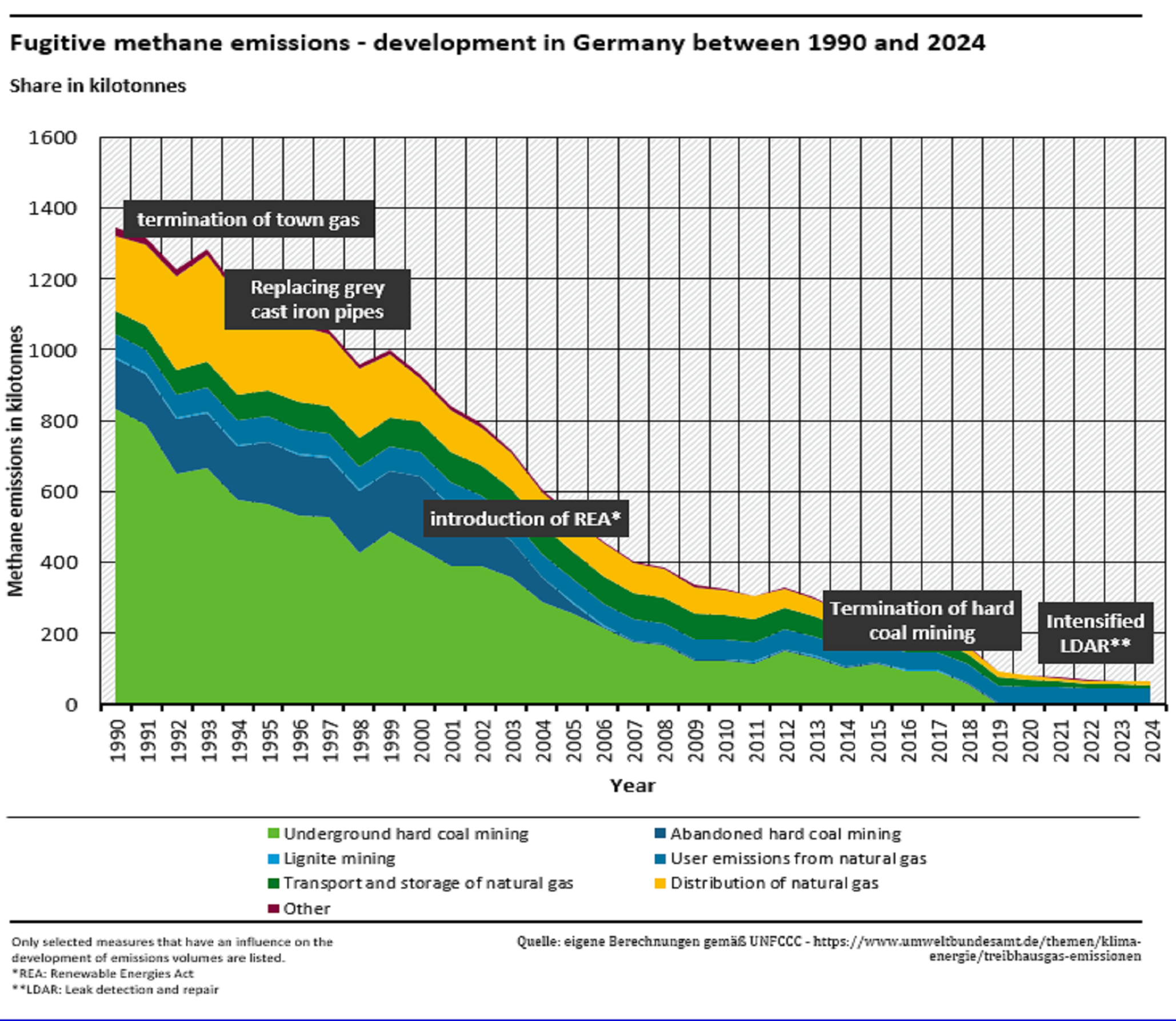 Fugitive methane emissions have fallen by 95 per cent since 1990 Source: Umweltbundesamt