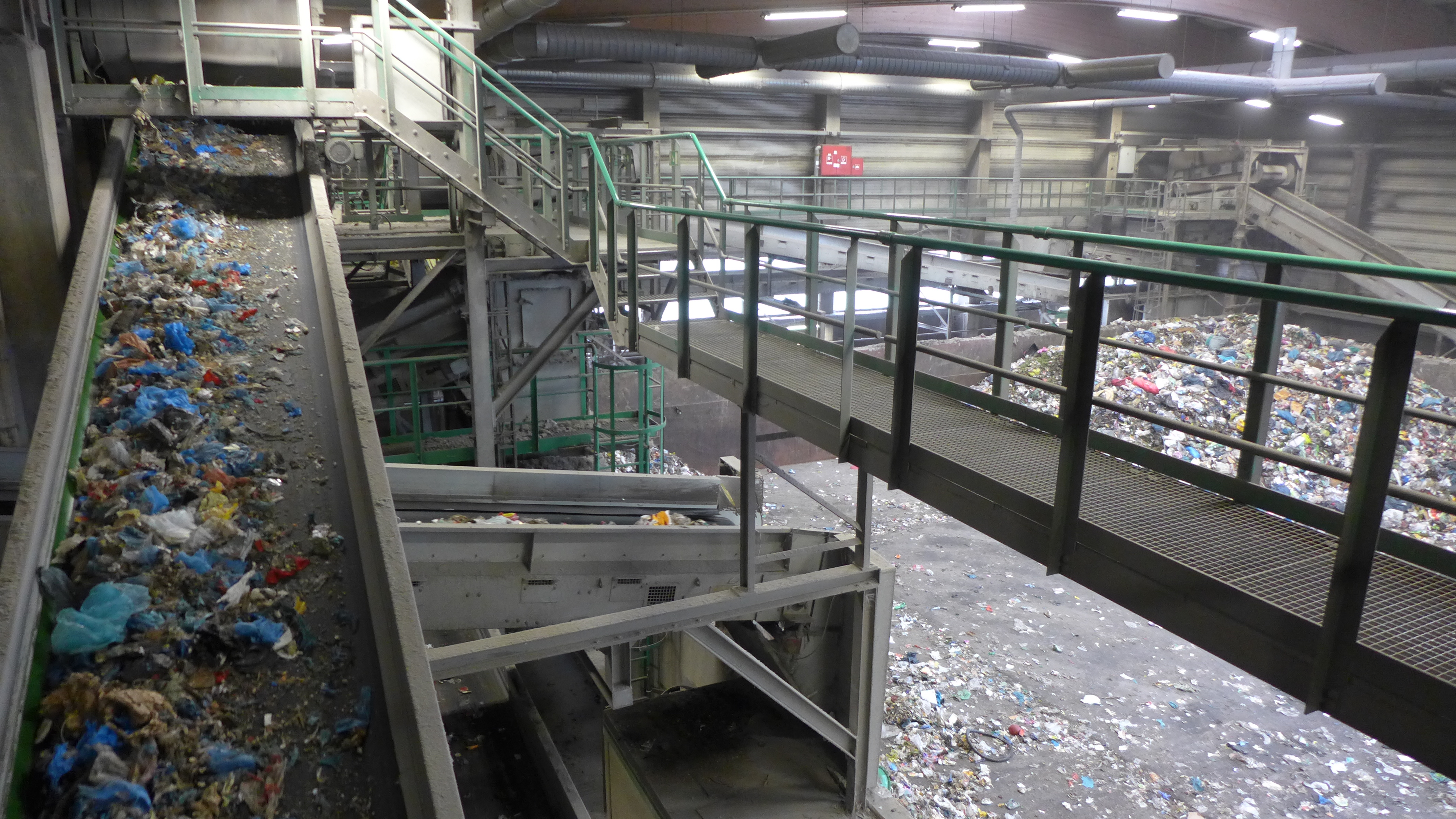 Mixed waste on a conveyer belt in a waste treatment plant