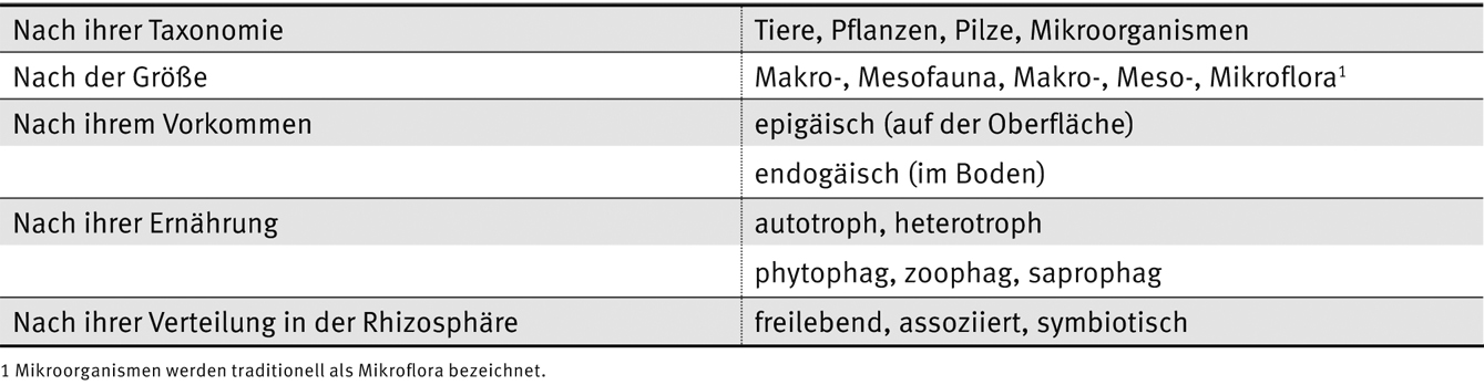 As the table below shows, soil organisms are classified differently by various scientific disciplines.
