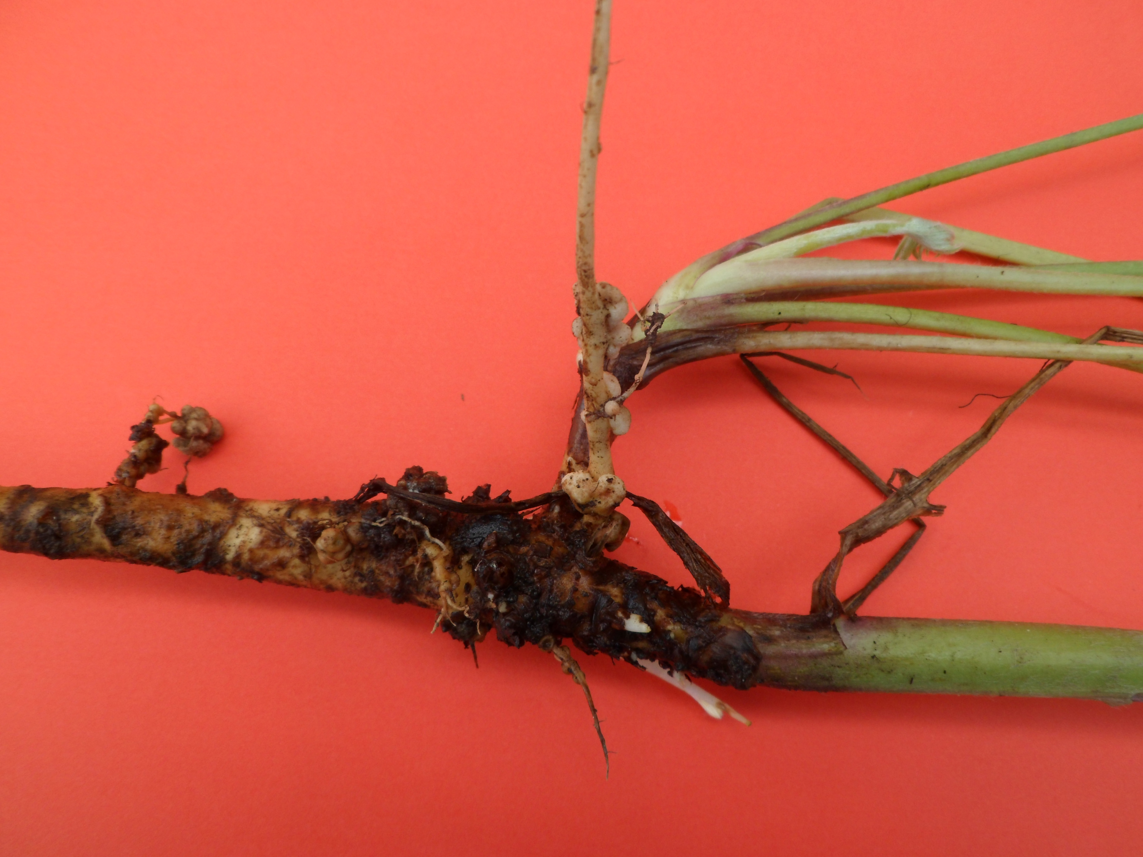 The nodular outgrowths of the root show the symbiosis between plant and organism.