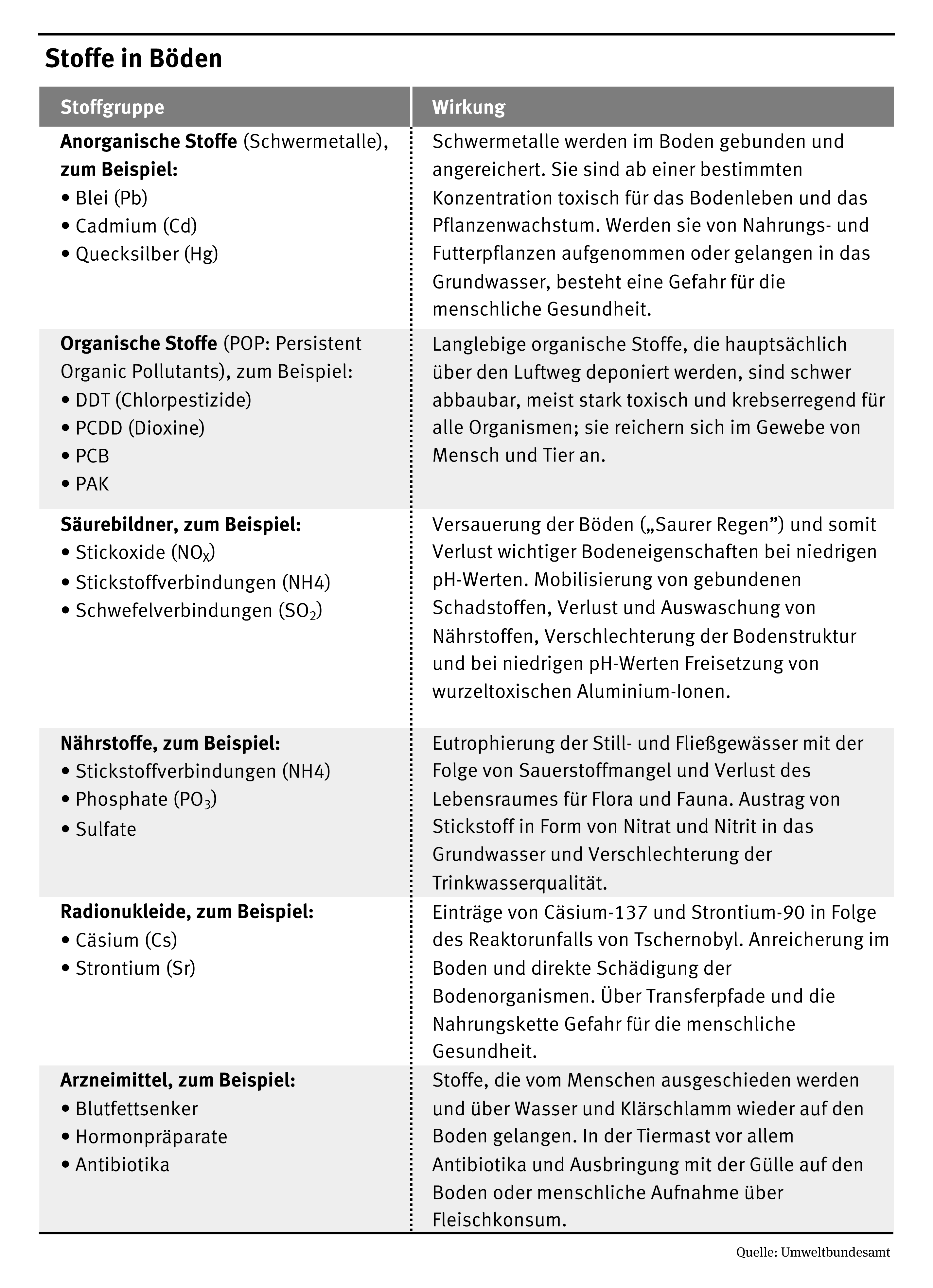 But the extent to which pollutants can be deposited and bound is determined by soil storage capacity. Once the soil’s filtering and buffering capacity is exceeded, the soil releases the stored pollutants, which end up in the groundwater or are uptaken by plants – and thus enter the food chain.