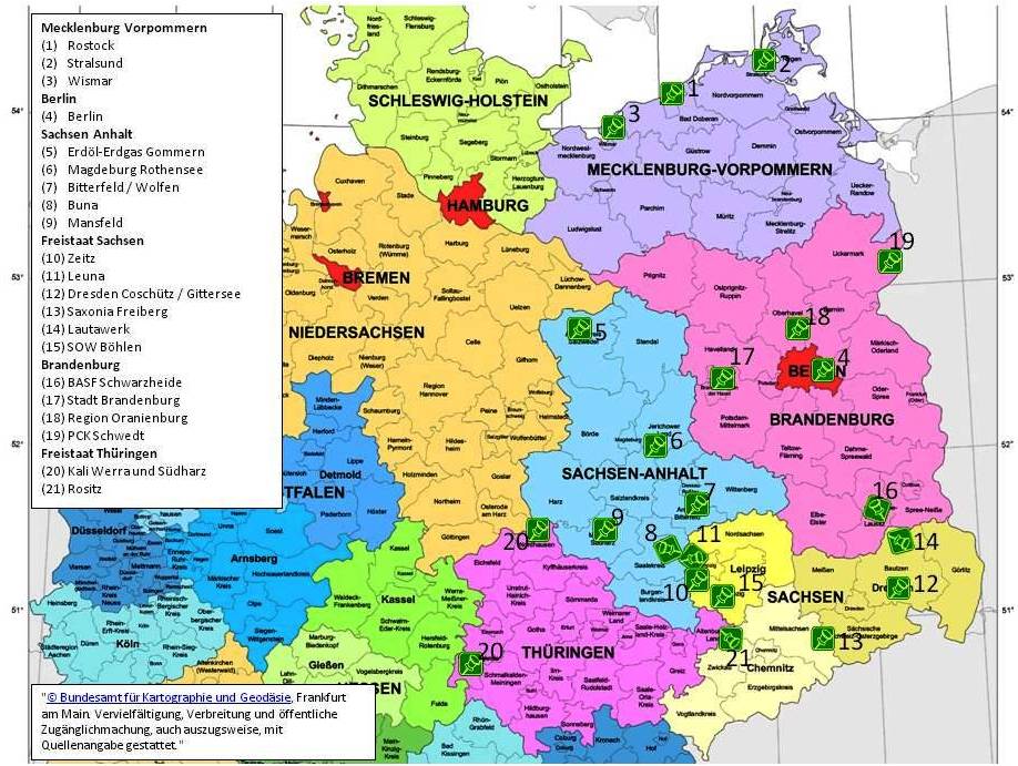 The federal government and regional states agreed to undertake 21 large scale ecological projects, based on economic and environmental policy. These projects involved major industrial concerns, potassium mining companies, and shipyards, as well as large industrial regions containing numerous companies.