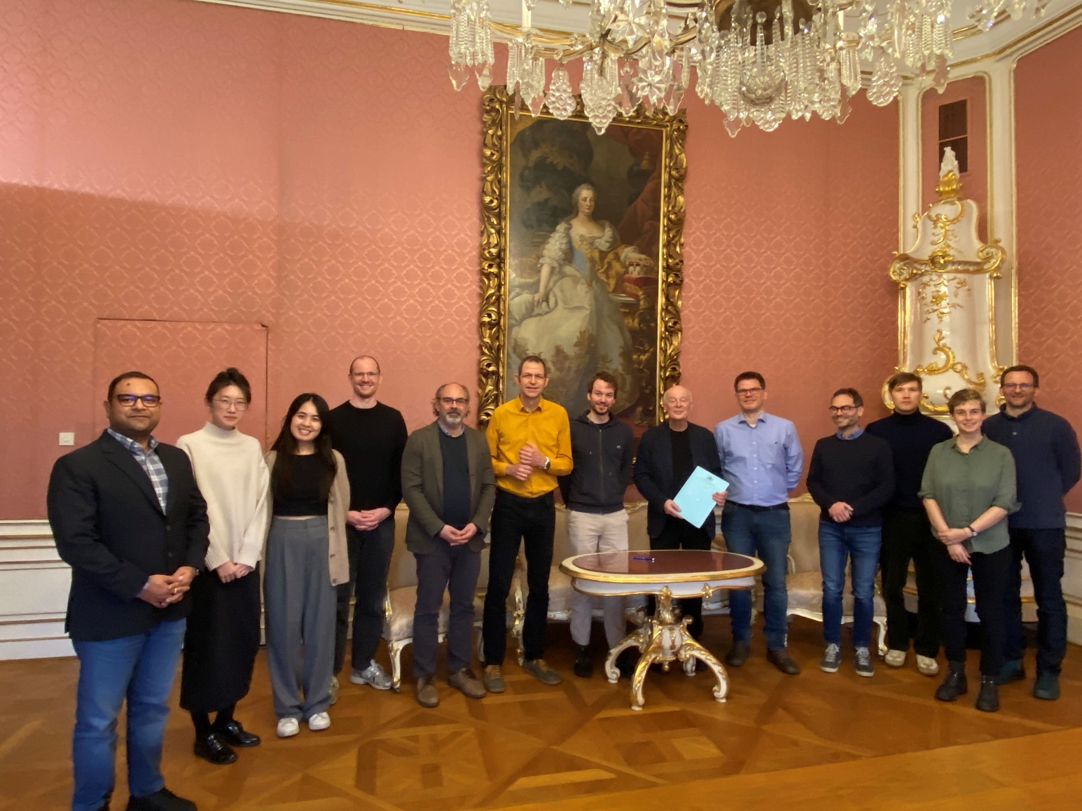 Central aspects of the collaboration were discussed at the kick-off workshop on December 10, 2024 at IIASA in Laxenburg (Austria). The focus was on the modelling of sufficiency approaches, socio-economic development paths and open science approaches in integrated assessment modelling. The UBA team presented the project objectives and gave an overview of the German scenario landscape. On the IIASA side, the head of the “Integrated Assessment and Climate Change” research group Volker Krey, the director of the “Energy, Climate, and Environment Program” Keywan Riahi and researchers Oliver Fricko, Fridolin Glatter, Aneeque Javaid, Siddharth Joshi, Jarmo Kikstra, Florian Maczek, Alessio Mastrucci, Measrainsey Meng and Xiaoyang Zhong took part. UBA was represented by project manager Niklas Roming and the scientific employees in the in-house research project Kikan Nelle and Lukas Eggert. IIASA Director General Hans Joachim (John) Schellnhuber signed the cooperation agreement, which had already been signed by UBA President Dirk Messner, at a small ceremony with the workshop participants.