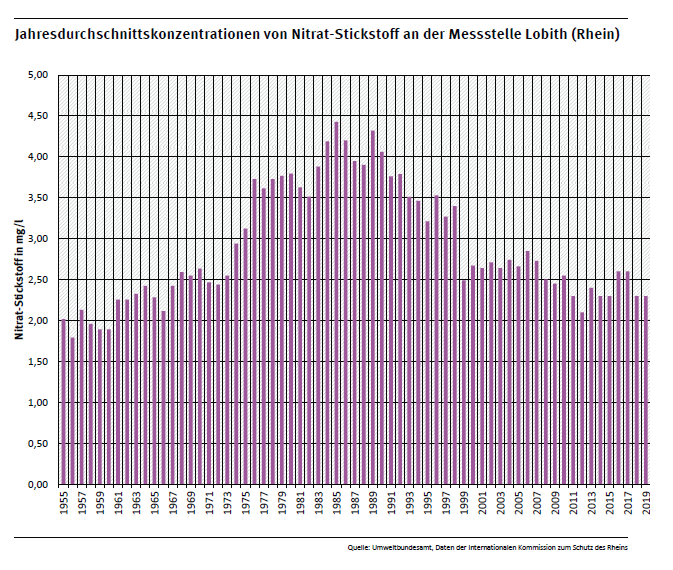 Fließgewässergüte 1955-2019 Messstelle Bimmen/Lobith am Rhein (Nährstoffe)