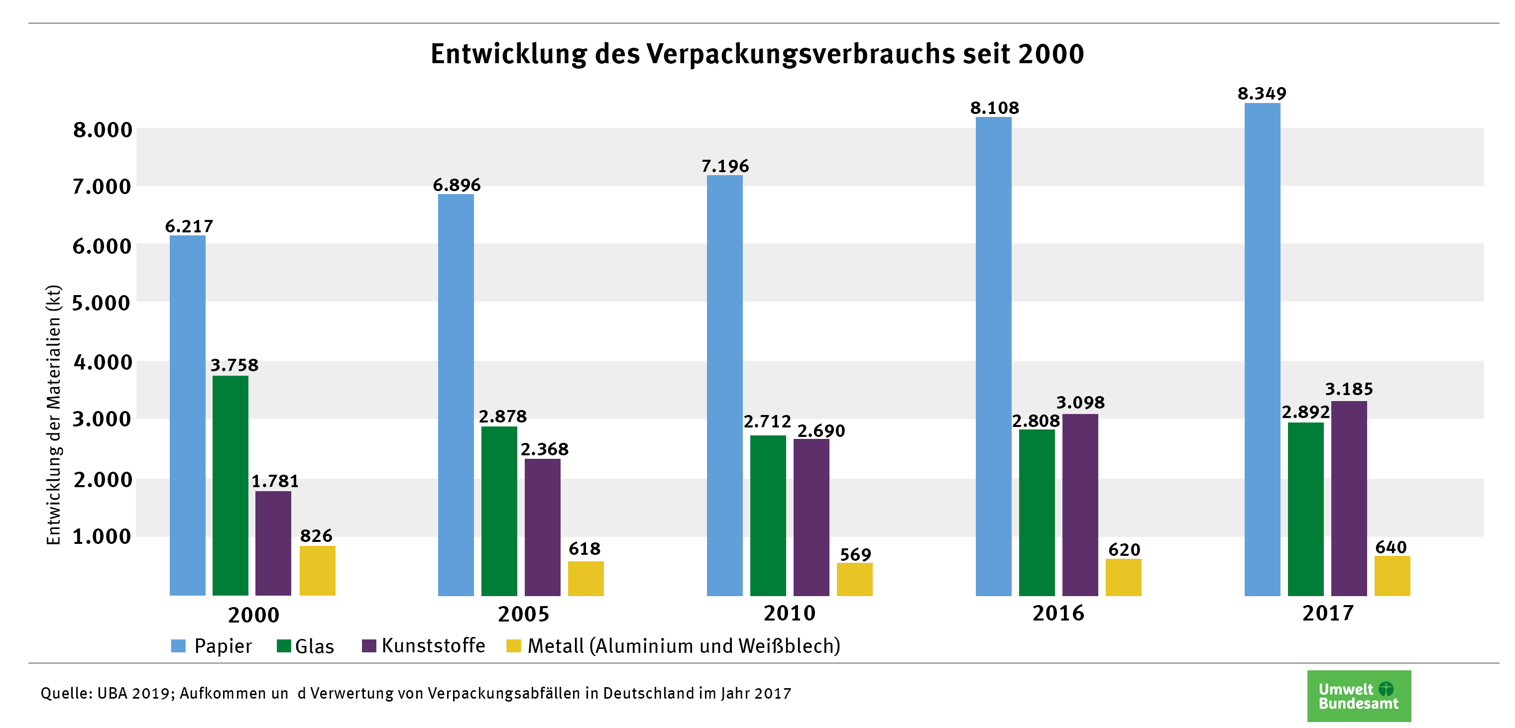 Verpackungsverbrauch im Jahr 2017 weiter gestiegen