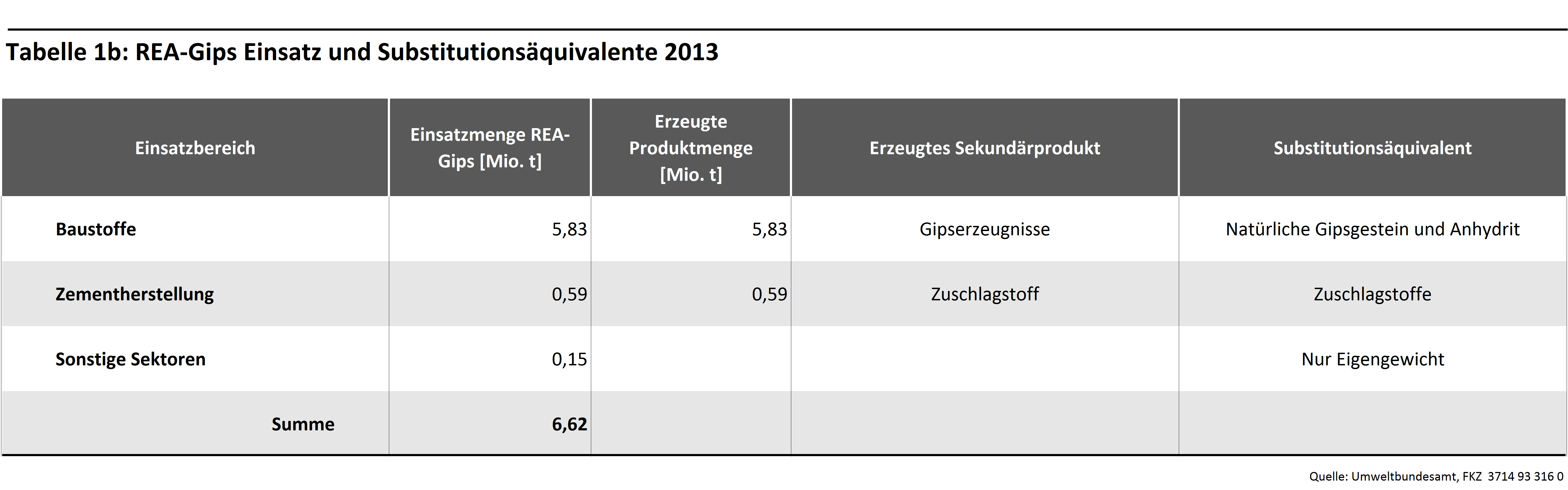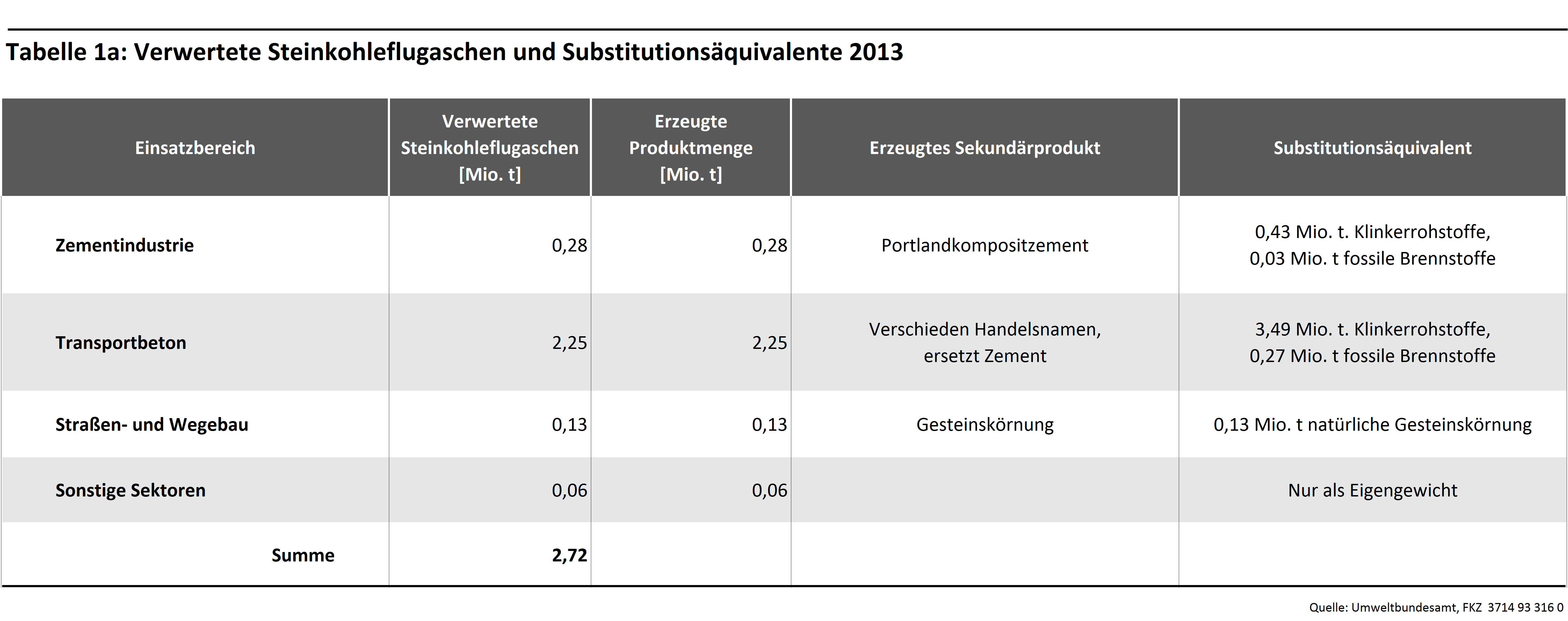Kraftwerksnebenprodukte Tabellen: Sekundärproduktion