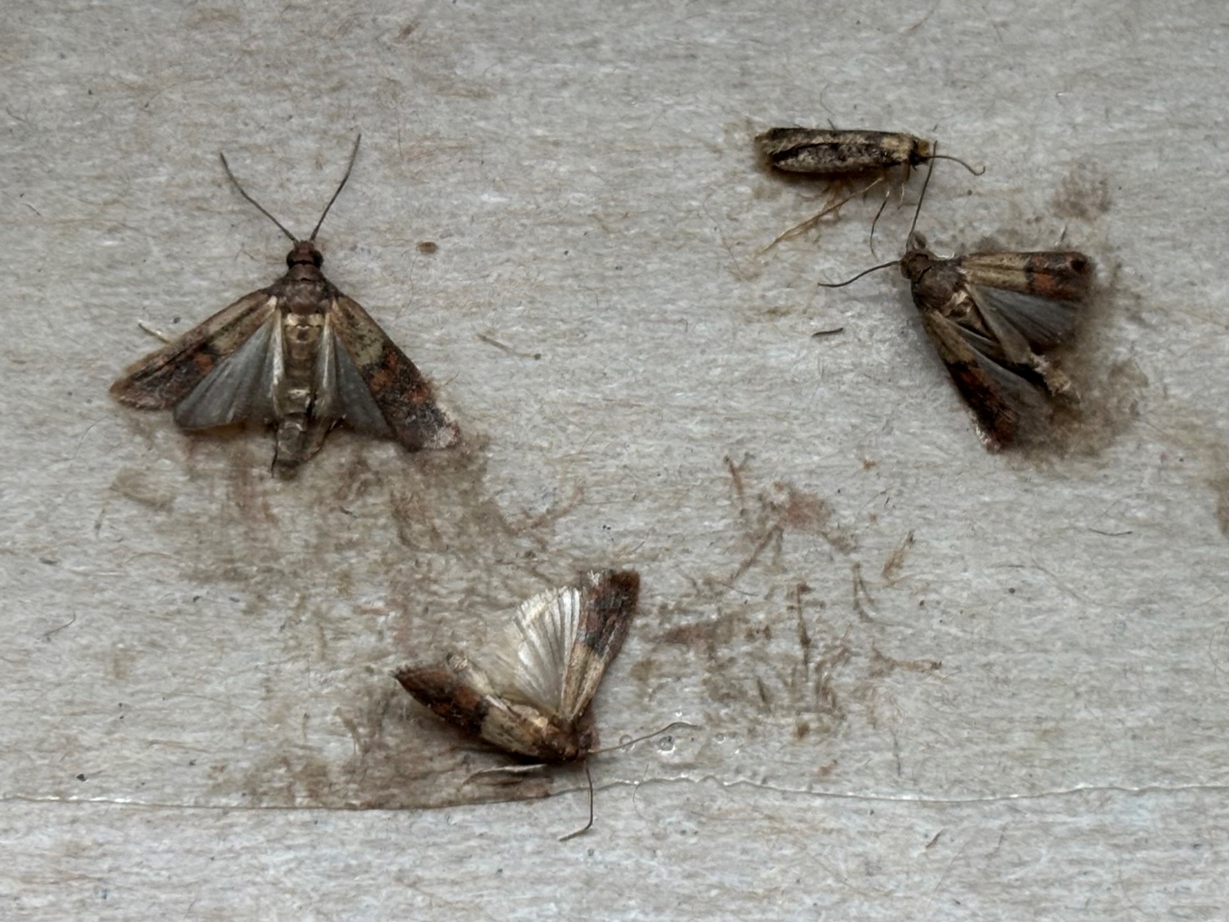 Lebensmittelmotten kleben auf einer Pheromonfalle Pheromonfalle gegen Lebensmittelmotten