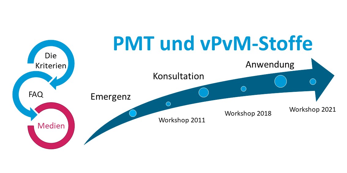 Lesen Sie die vollständige Geschichte der Entwicklung der PMT/vPvM-Kriterien im Rahmen der EU-Chemikaliengesetzgebung REACH zur Identifizierung von PMT/vPvM-Stoffen: (01) –> Einführung zu PMT/vPvM-Stoffen, (02) –> Emergenz (2009 - 2015) der PMT/vPvM-Kriterien, (03) –> Erster PMT-Workshop 2011, (04) –> Öffentliche Konsultation (2016 - 2019) zu den PMT/vPvM-Kriterien, (05) –> Zweiter PMT-Workshop 2018, (06) –> Anwendung (2019 - laufend) der PMT/vPvM-Kriterien, (07) –> Dritter PMT-Workshop 2021, (08) –> Medienberichterstattung, (09) –> Häufig gestellte Fragen (FAQ), (10) –> Die abgestimmten PMT/vPvM-Kriterien