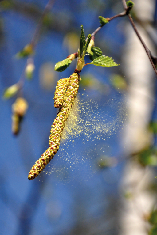 In Deutschland gelten die Pollen von Hasel, Erle, Birke und Esche sowie von Süßgräsern inklusive Roggen, Beifuß und Ambrosie als besonders allergierelevant. Gegen diese acht Pollentypen ist die erwachsene deutsche Bevölkerung am häufigsten sensibilisiert19. Die Birke führt neben den Gräsern diese „Hit-Liste“ der Sensibilisierungen an. Während der Birkenpollensaison, die meist frühestens Ende März beginnt, können sehr hohe Pollenkonzentrationen auftreten.