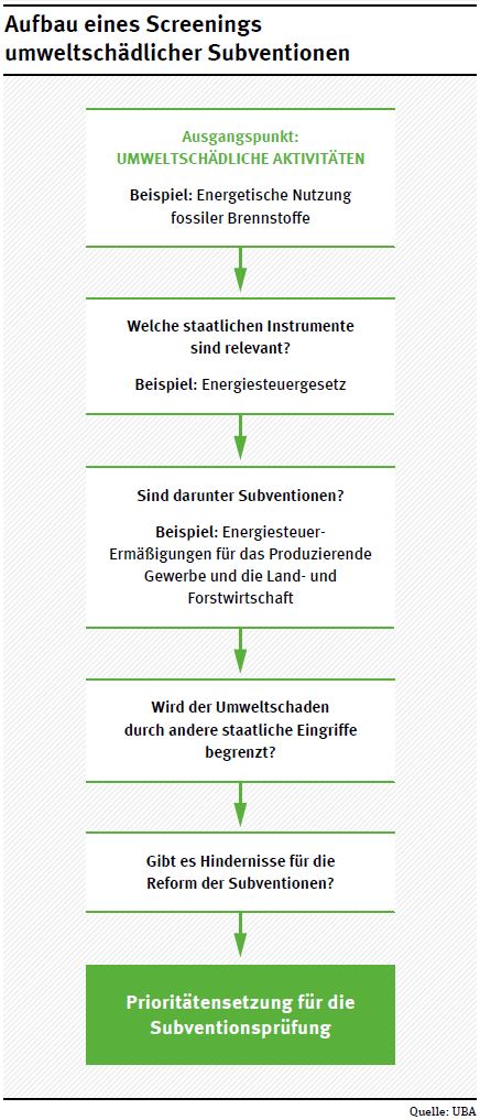 Vor allem im Energiesektor gibt es noch große Potentiale für einen Subventionsabbau – etwa bei der allgemeinen Strom- und Energiesteuerermäßigung für das produzierende Gewerbe sowie die Land- und Forstwirtschaft. Die begünstigten Unternehmen zahlen trotz einer Reform 2011 lediglich 75 Prozent der regulären Energie- und Stromsteuern. Zusätzlich können Unternehmen des produzierenden Gewerbes unter bestimmten Voraussetzungen einen Spitzenausgleich beanspruchen. Für Strom bedeutet dies, dass sie für eine zusätzlich verbrauchte Kilowattstunde nicht mehr rund 2 Cent, sondern nur noch 0,15 Cent Stromsteuer zahlen müssen. Durch beide Ermäßigungen entgehen dem Staat allein über drei Milliarden Euro pro Jahr – gleichzeitig werden nötige Anreize zum Energiesparen nicht gesetzt.