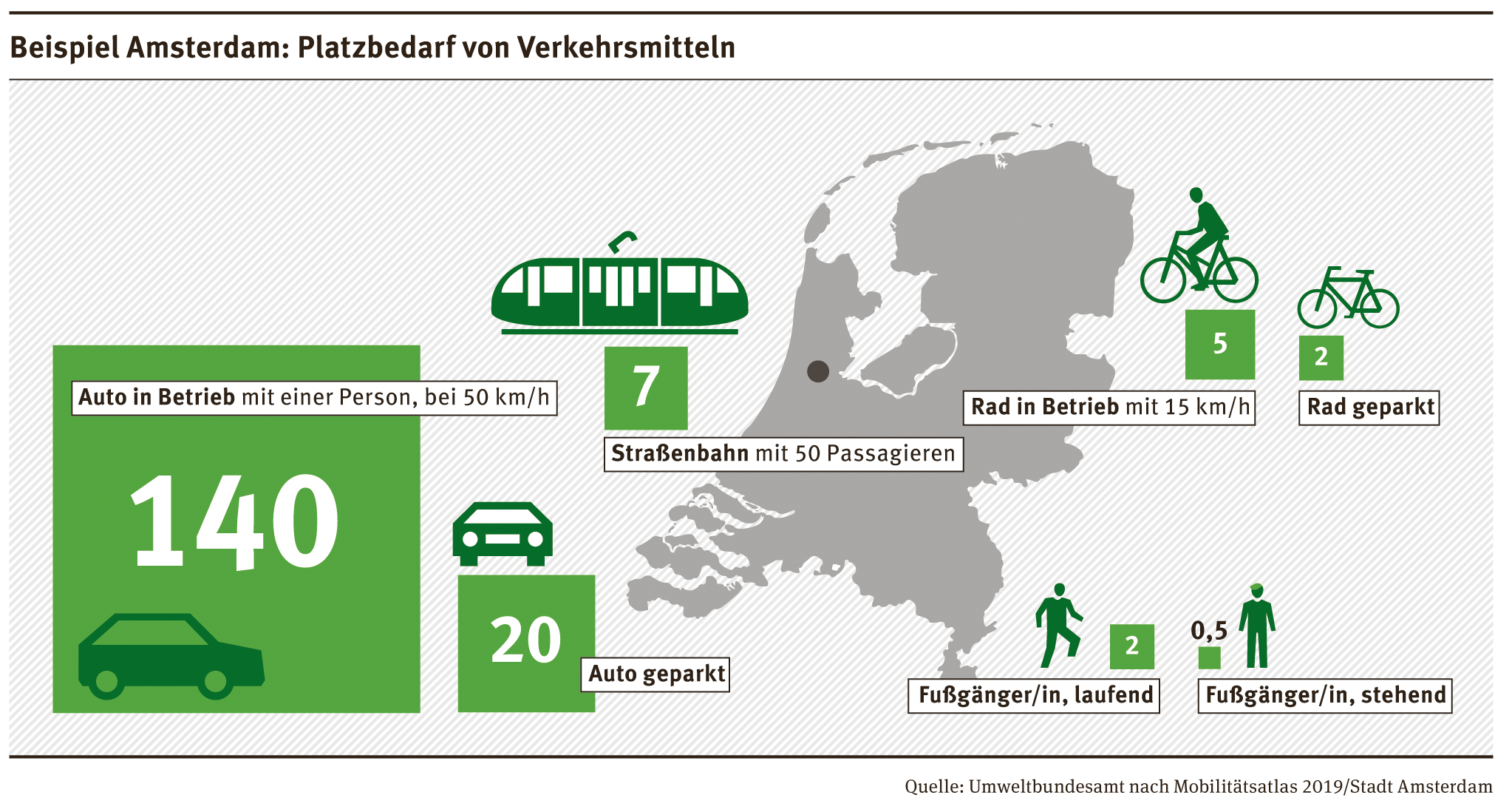 Dirk Messner: „Mit einer Verkehrswende hin zu mehr Fußverkehr, Radverkehr und öffentlichem Verkehr kann unsere Mobilität sozial und ökologisch gerechter werden. Durch sie gewinnt der Mensch mehr Raum zum Leben und damit Lebensqualität. Weniger Autos auf den Straßen und den Parkplätzen schafft Platz, der für Wohnraum, Erholungsraum und für umweltfreundliche Mobilität besser genutzt werden kann.“ Das UBA empfiehlt langfristig ein Ziel von etwa 150 Autos pro 1000 Einwohner in Großstädten. Zum Vergleich: In Berlin sind derzeit etwa 335 Fahrzeuge pro 1.000 Einwohner auf den Straßen unterwegs, in München ca. 503 und in Deutschland insgesamt sind es im Durchschnitt 575.