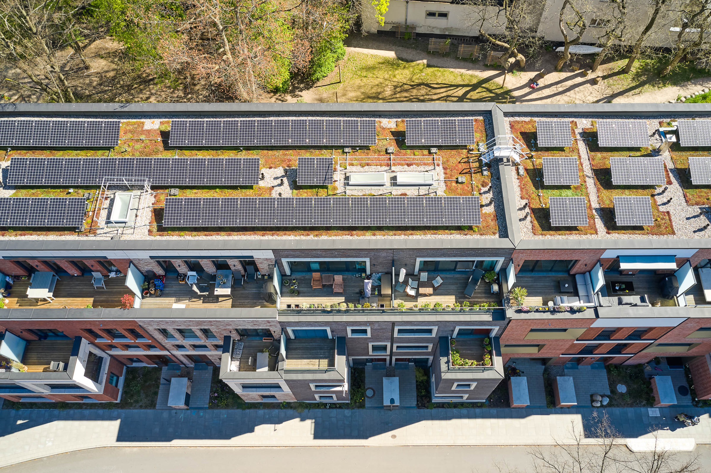 Reihenhäuser mit Solaranlagen auf dem Dach