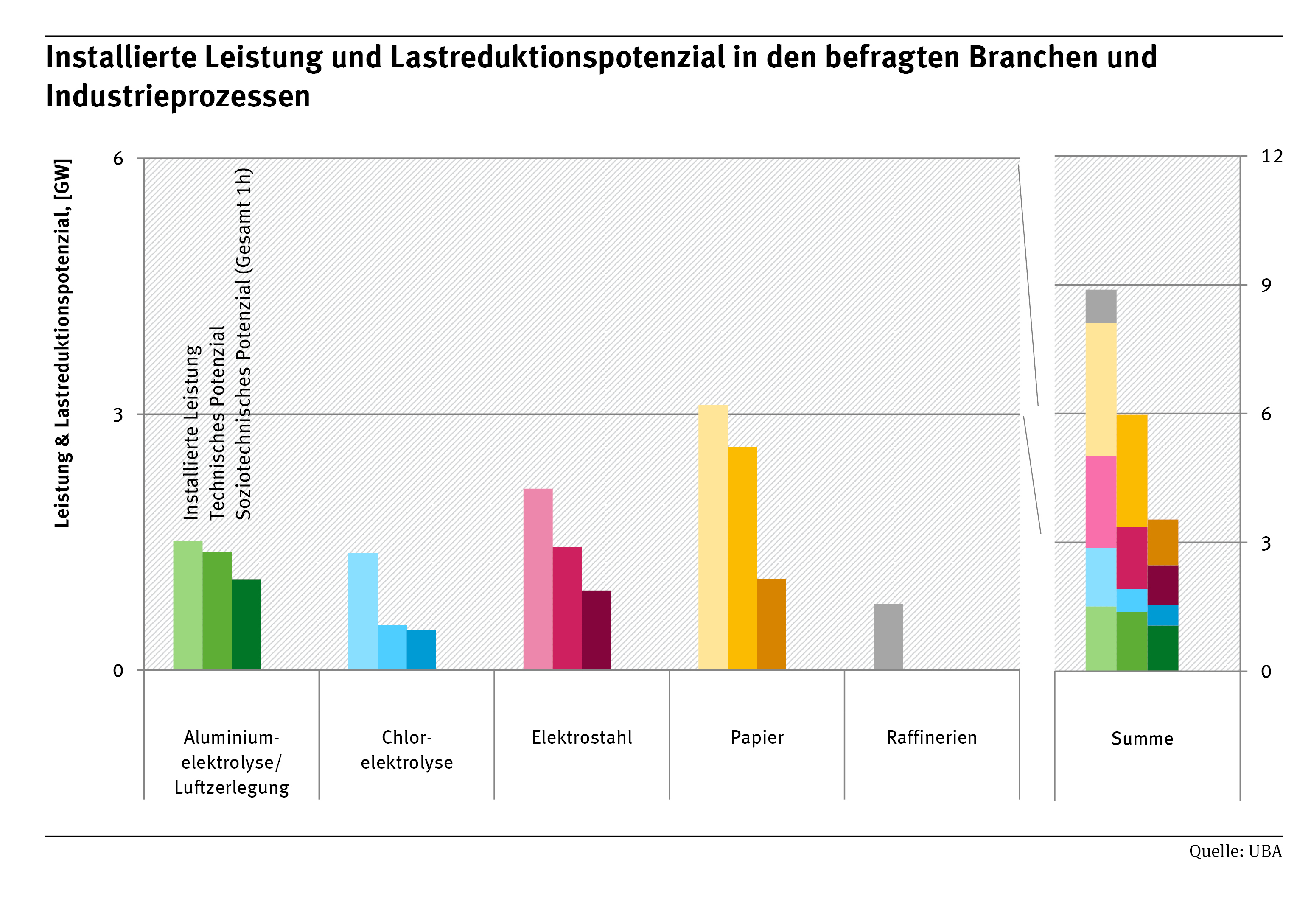 Für die Studie hatte das UBA 25 Unternehmen aus den Branchen und Industrieprozessen der Papierindustrie, Chlorelektrolyse, Elektrostahl, Aluminiumelektrolyse, Luftzerlegung, Raffinerien, Zementherstellung, Behälterglasindustrie und Braunkohletagebaue befragen lassen. Alle neun Branchen, die zusammen rund 30 Prozent des industriellen Stromverbrauchs ausmachen, zeichnen sich durch eine hohe zeitliche Verfügbarkeit aus (benötigen also an vielen Stunden des Tages Strom) und haben eine hohe installierte Leistung.