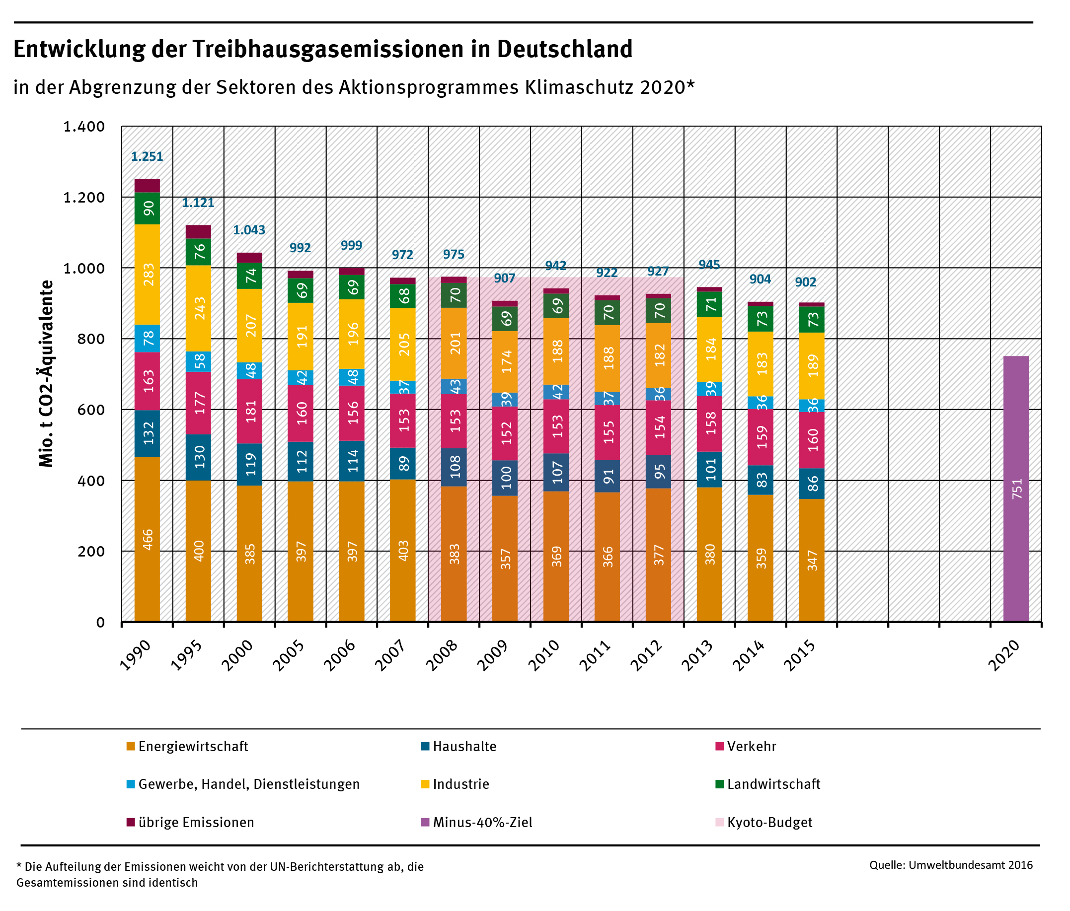 Die aktuellen Übersichten der Treibhausgasemissionen 1990 – 2015 finden sie hier.