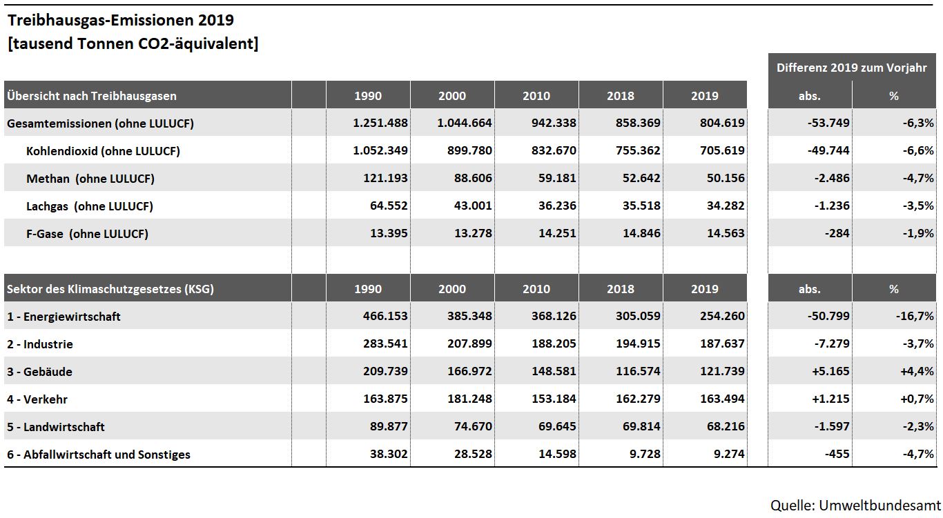 Treibhausgasemissionen gingen 2019 um 6,3 Prozent zurück