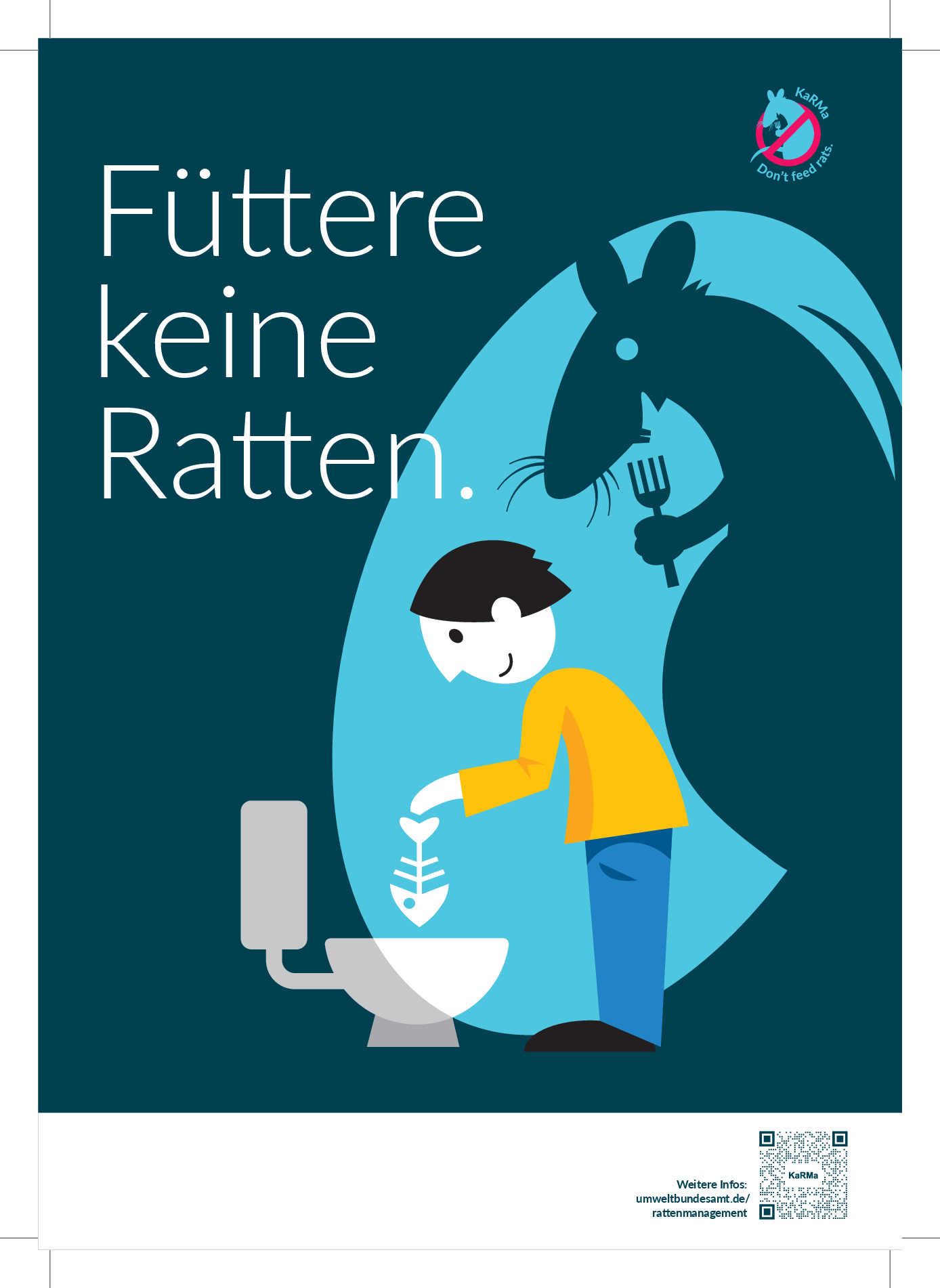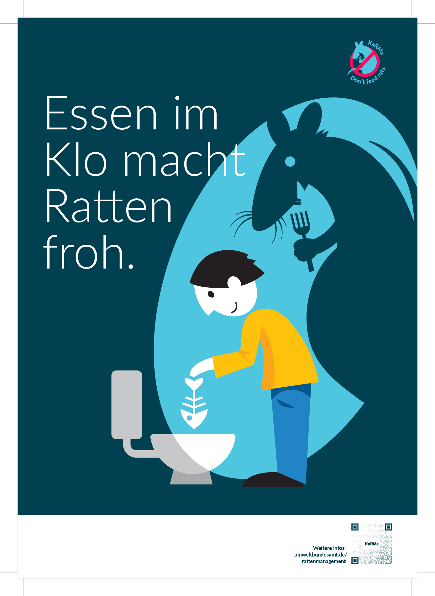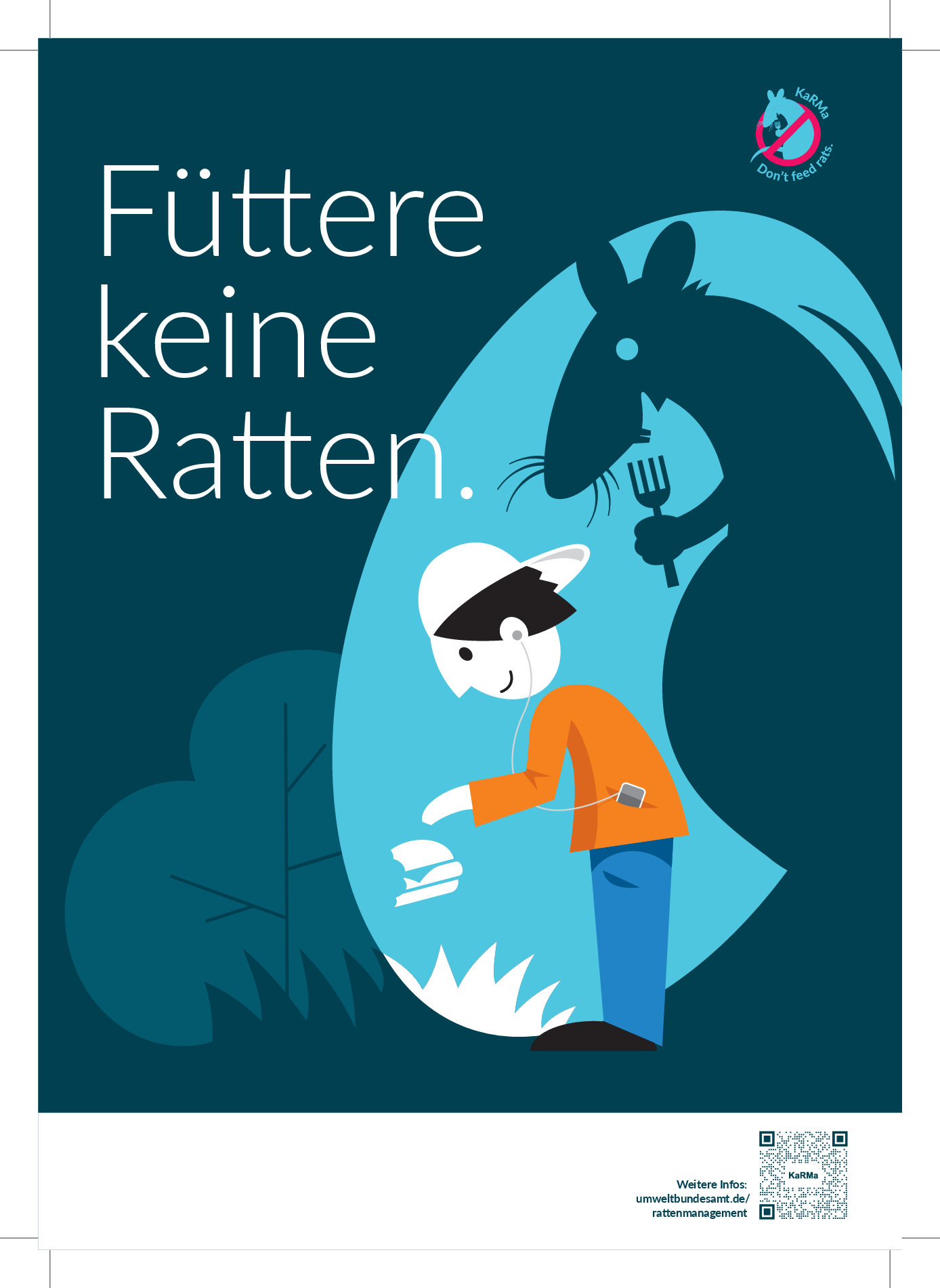 Um die Öffentlichkeit auf das Problem hinter dem Problem „Stadtratten“ aufmerksam zu machen, bietet das Umweltbundesamt verschiedene Plakate und Postkarten an, die von der Agentur „HOCHZWEI“ zu diesem Zweck designt wurden. Auf verschiedenen Motiven werden typische Verhaltensweisen, die das Aufkommen von Ratten in städtischen Bereichen begünstigen, bildhaft und sprachlich thematisiert. Bürgerinnen und Bürger sollen so auf die Ursachen für einen Rattenbefall aufmerksam gemacht und zu einer Verhaltensänderung bewegt werden.