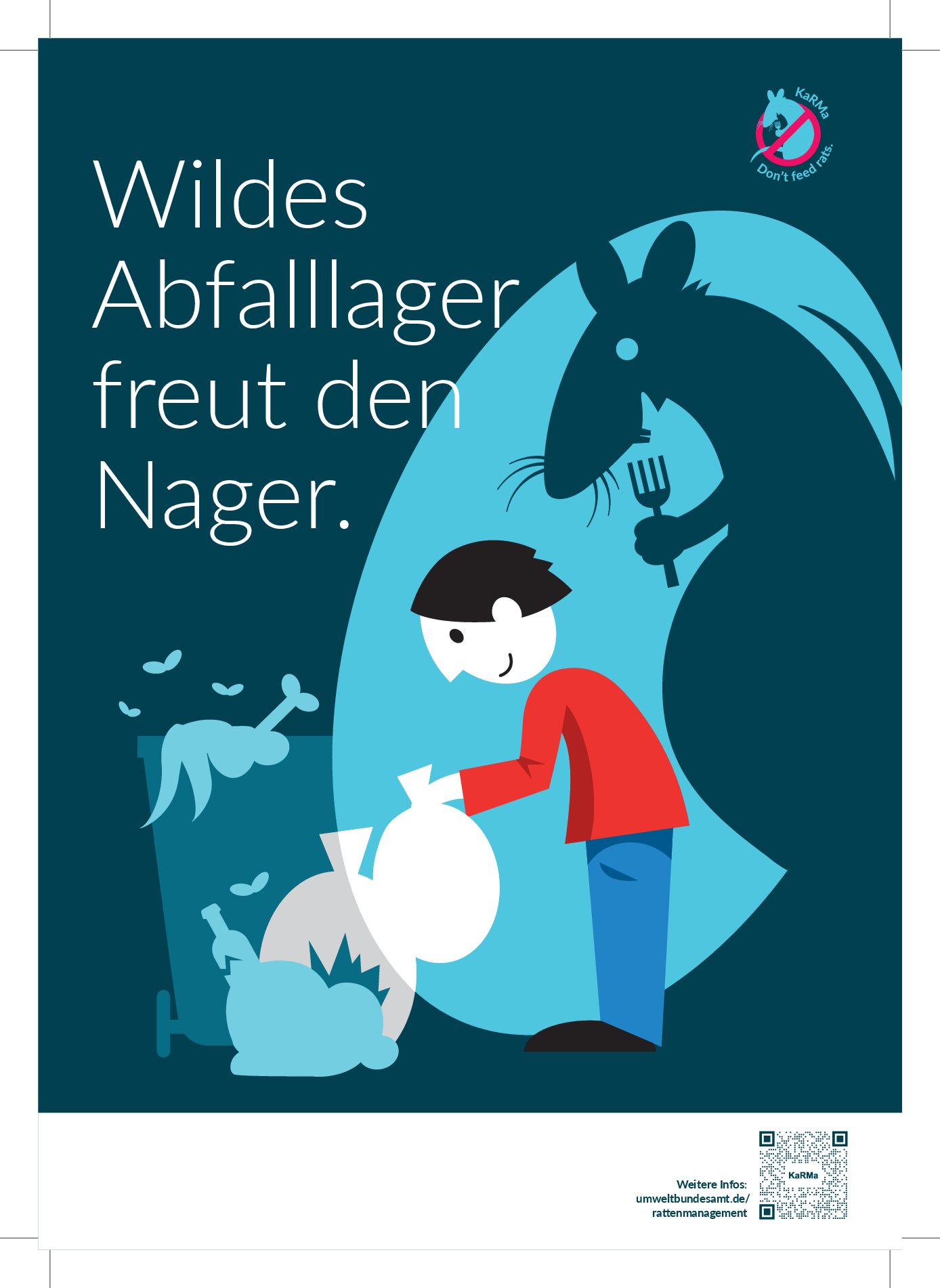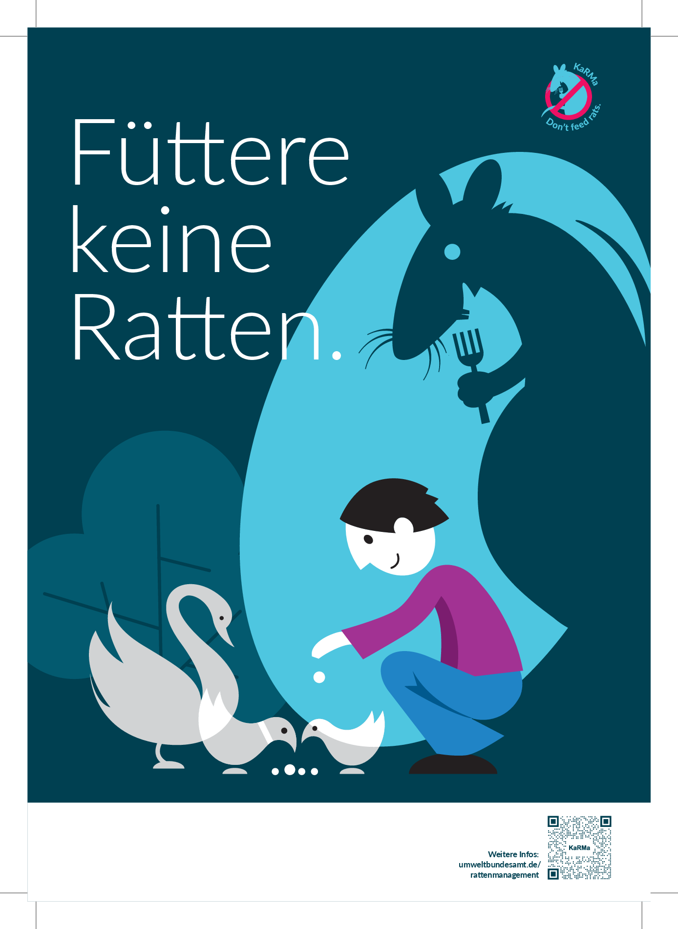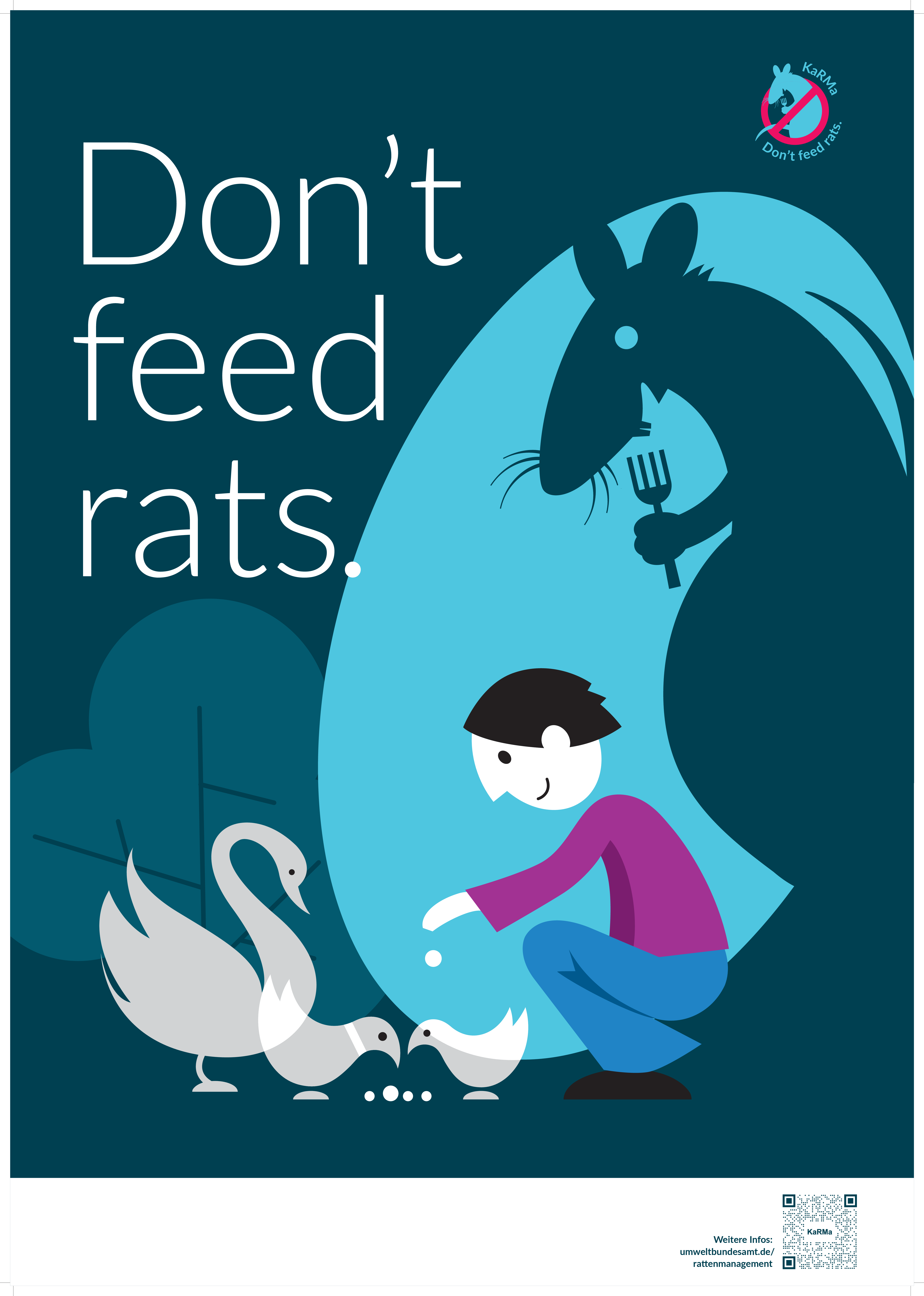 Um die Öffentlichkeit auf das Problem hinter dem Problem „Stadtratten“ aufmerksam zu machen, bietet das Umweltbundesamt verschiedene Plakate und Postkarten an, die von der Agentur „HOCHZWEI“ zu diesem Zweck designt wurden. Auf verschiedenen Motiven werden typische Verhaltensweisen, die das Aufkommen von Ratten in städtischen Bereichen begünstigen, bildhaft und sprachlich thematisiert. Bürgerinnen und Bürger sollen so auf die Ursachen für einen Rattenbefall aufmerksam gemacht und zu einer Verhaltensänderung bewegt werden.