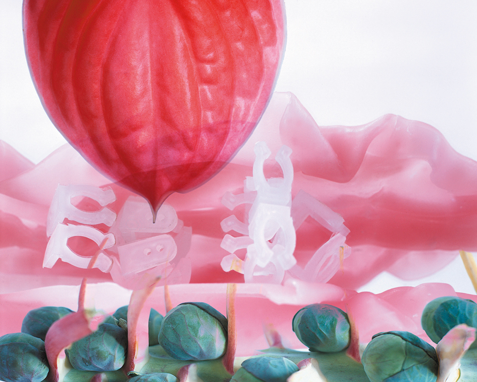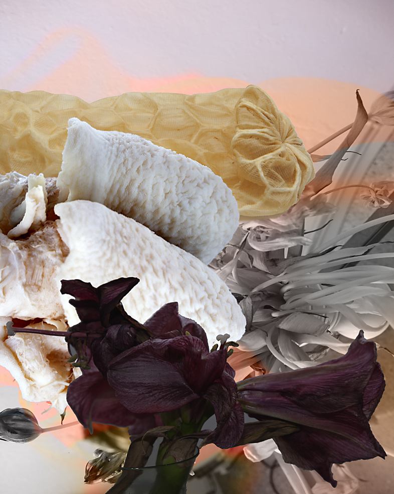 Jahr für Jahr landen in Deutschland 11 Millionen Tonnen Lebensmittel im Müll, größtenteils weil sie von den Normen der Nahrungsmittelindustrie abweichen oder nicht unseren Vorstellungen hinsichtlich Frische und Aussehen entsprechen. Schönheit und Vergänglichkeit sind auch zwei Konstanten im Werk der bildenden Künstlerin Christina Paetsch, die oft in ihren Fotocollagen objets trouvès verarbeitet – meistens aus dem organischen Bereich, wie z.B. Innereien und Knochen aber auch Blumen und Pflanzenfasern. Ihre surrealen Kompositionen wirken irritierend und fremdartig, sie stellen das Sehen auf die Probe und laden zu neuen Assoziationen ein. Ein weiterer Schwerpunkt ihrer Arbeit ist die Welt der Waren und des Konsums, die Paetsch scheinbar mit dokumentarischem Blick einfängt. Doch beim Verweilen entdeckt man bei ihren Fotografien den Kunstwillen einer bildenden Künstlerin, die sich gängigen Kategorien entzieht.